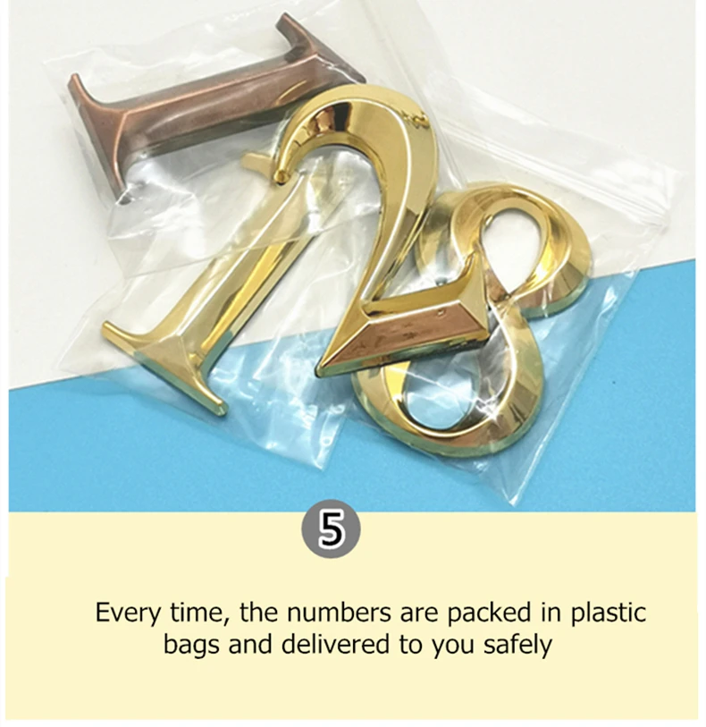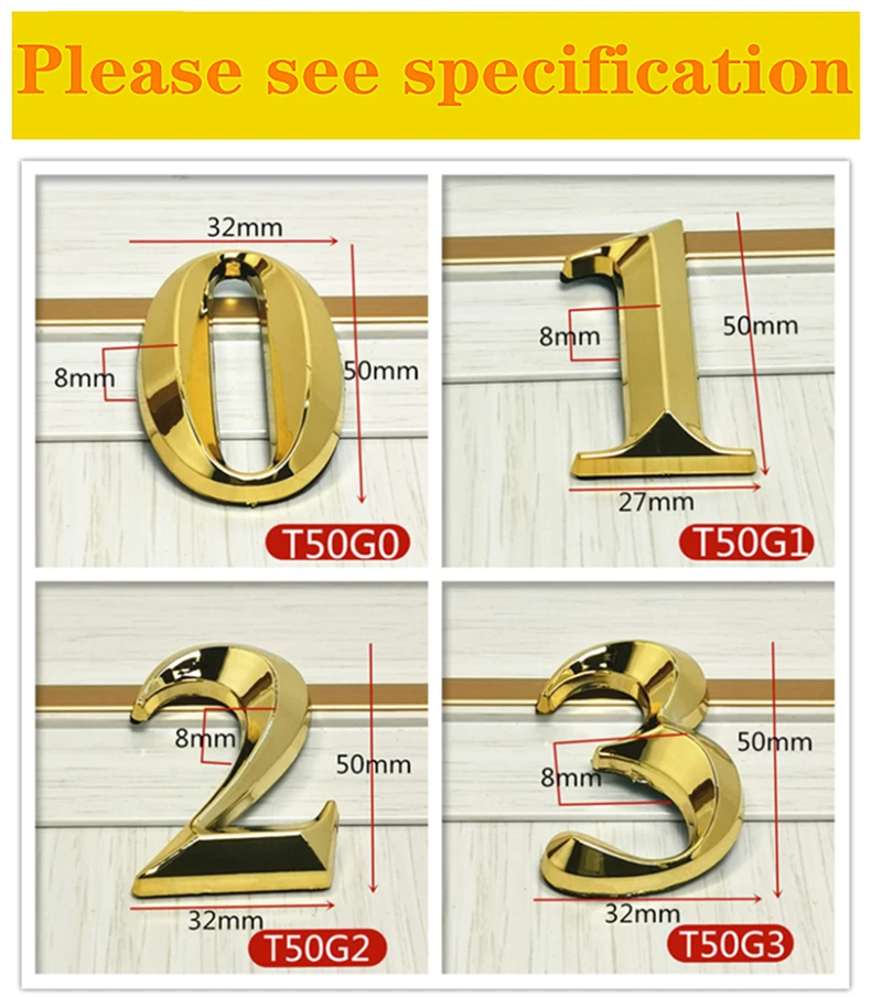 1 шт. цифры ворот от 0 до 9, пластиковые Цифры 5 см, самоклеящиеся наклейки, наклонная выступающая форма, Золотая дверная пластина, адрес, номер двери дома