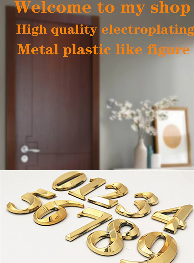 1 шт., цифры ворот от 0 до 9, пластиковый номер 5 см, самоклеящаяся наклейка, жесткая Золотая дверная пластина, адрес, номер двери дома