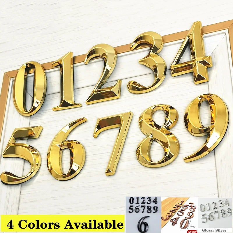 Номер для комнатных ворот 0-9, 1 шт., серебристыйЗолотой 50 мм, сов...