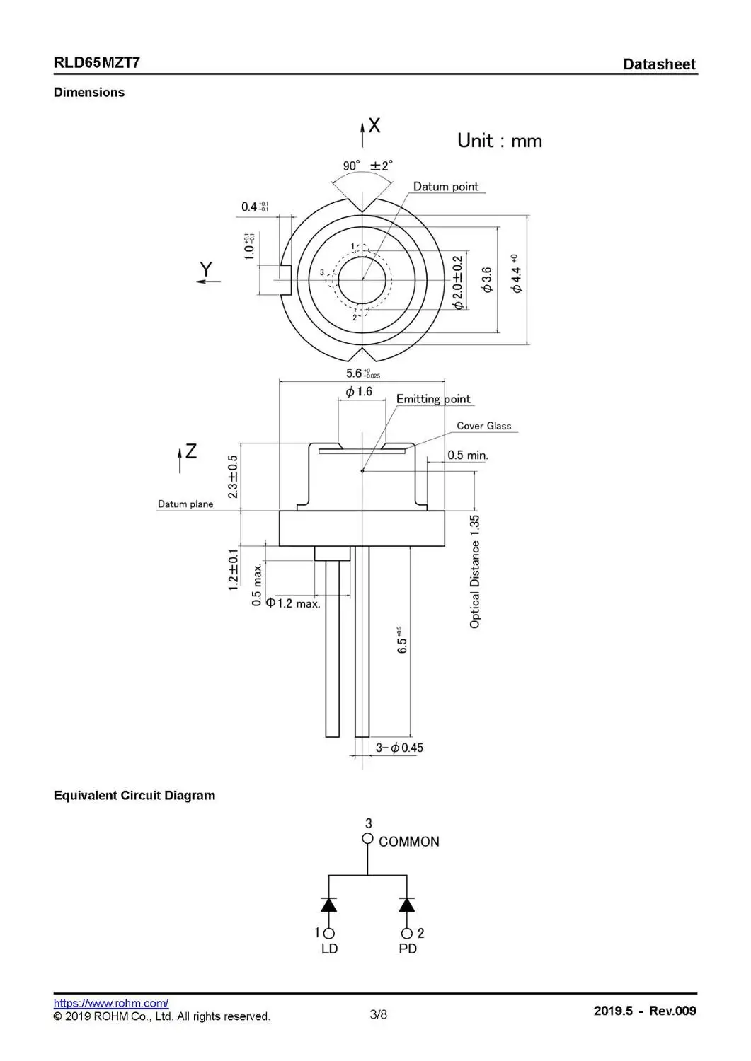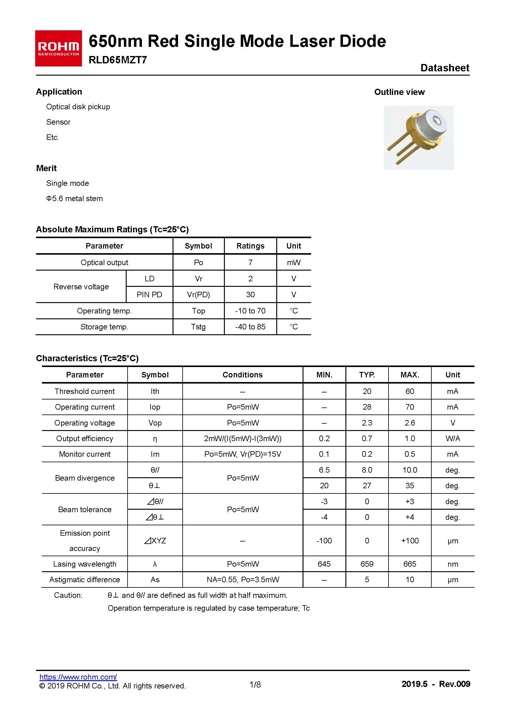 Лазерный диод ROHM RLD65MPT7 5,6 мм, красный, 650 нм, 808 нм, 660 нм, 5 мВт, 7 МВт, 10 мВт, 5 шт.