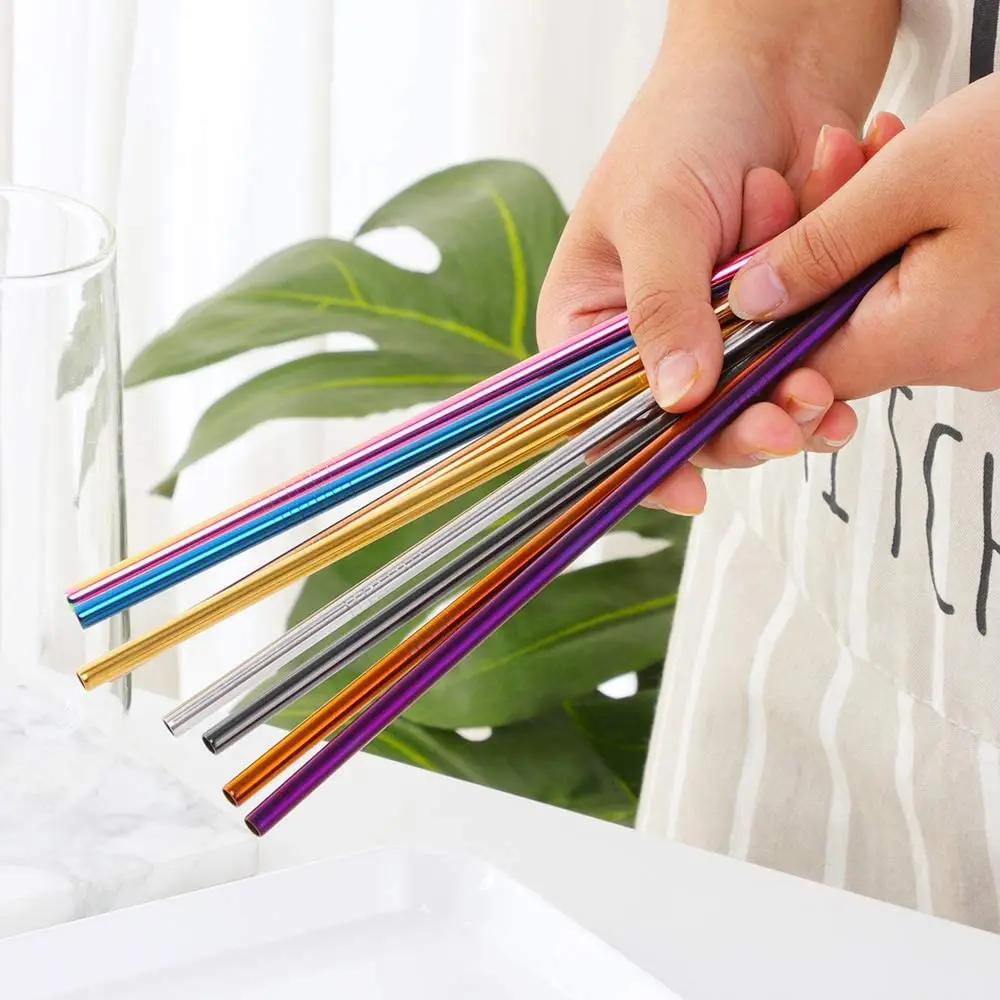 20 шт., Прямая поставка, 10 цветов, многоразовые металлические трубочки для питья, соломинки из нержавеющей стали 304 с набором кистей, прямые изогнутые соломинки