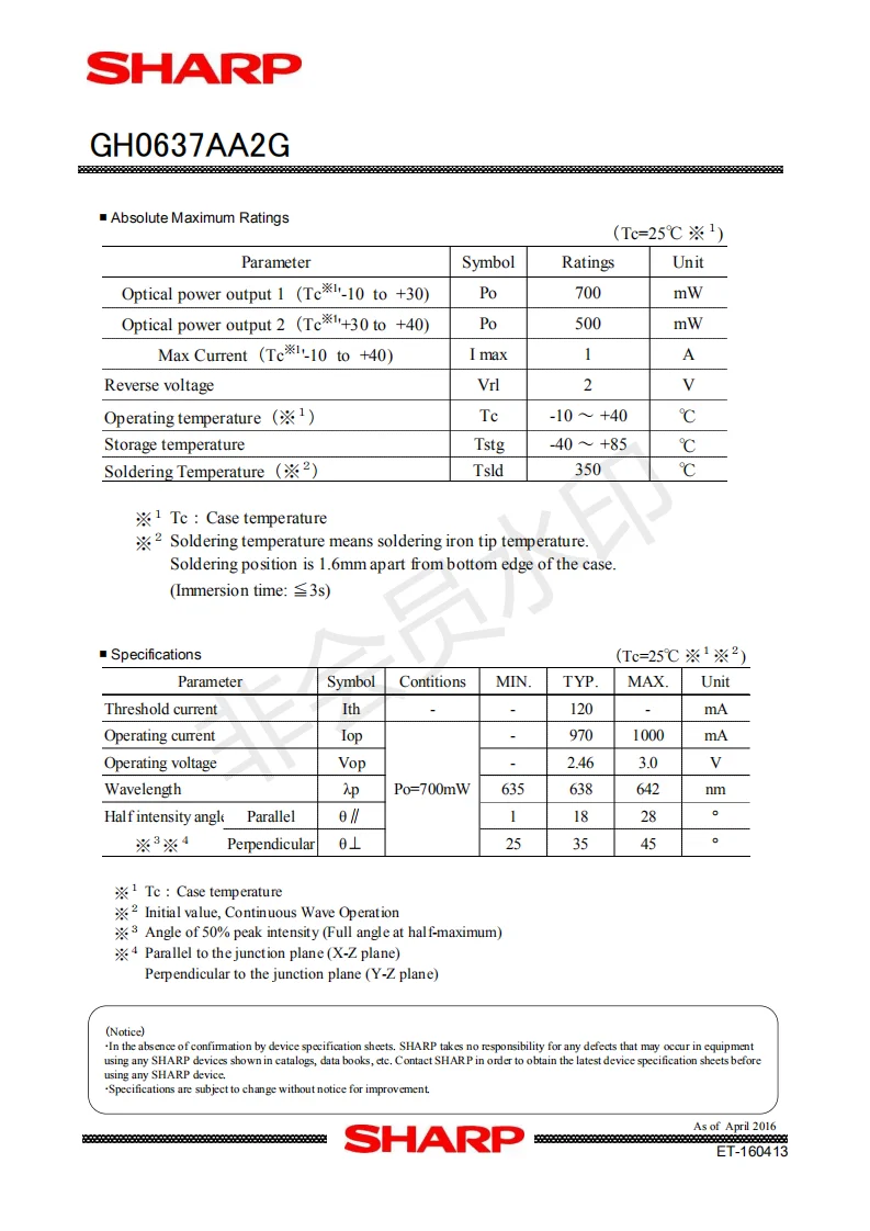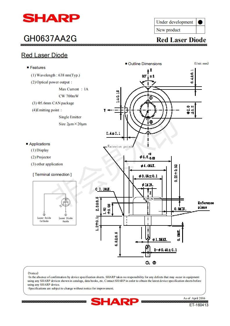 5 шт. Sharp GH0637AA2G 700 мм красный нм МВт лазерный диод для RGB-проекторов