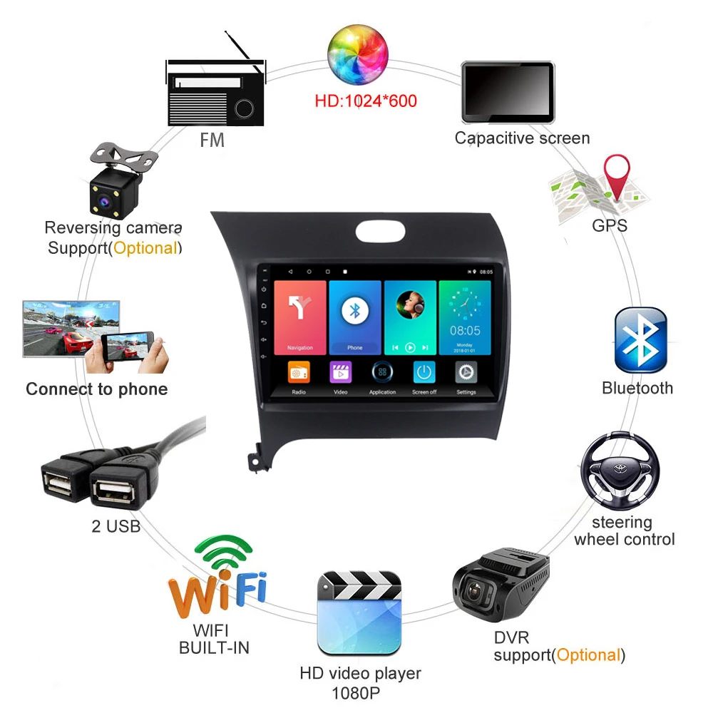 9 дюймов Android 8,1 2 Din Автомобильный мультимедийный стерео плеер для KIA Cerato K3 forte 2013 2014 2015 2016 2017 навигация GPS WIFI радио