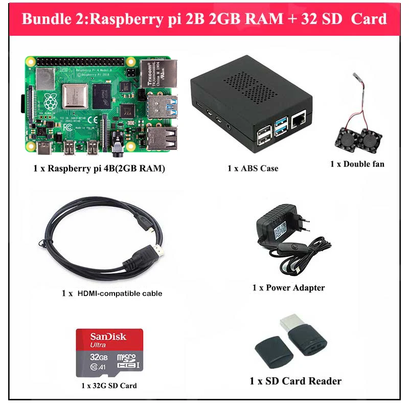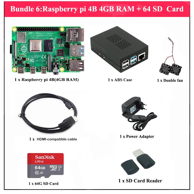 Оригинальный комплект Raspberry Pi 4 Model B, чехол из АБС-пластика, двойной вентилятор, адаптер питания, SD-карта и считыватель для RPI 4B на 64 и 32 Гб