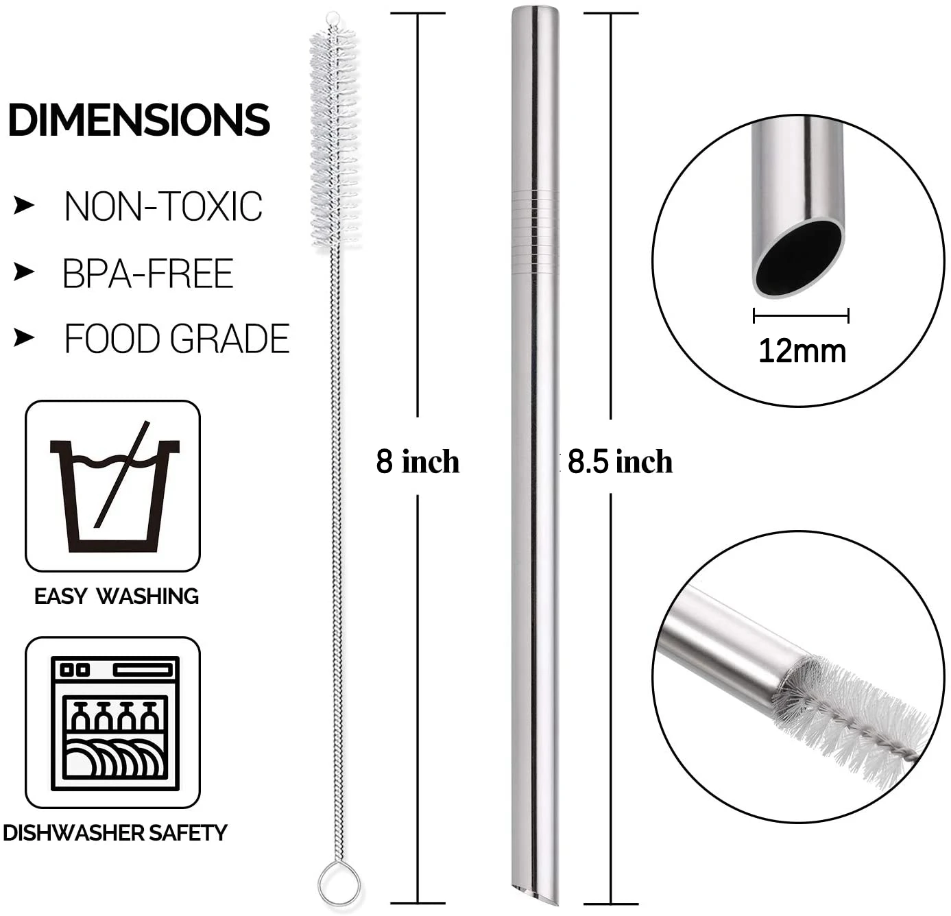 4 шт. острые многоразовые соломинки из нержавеющей стали 304, стандартные угловые наконечники 0,5 дюйма, широкие питьевые зеркальные соломинки для чая