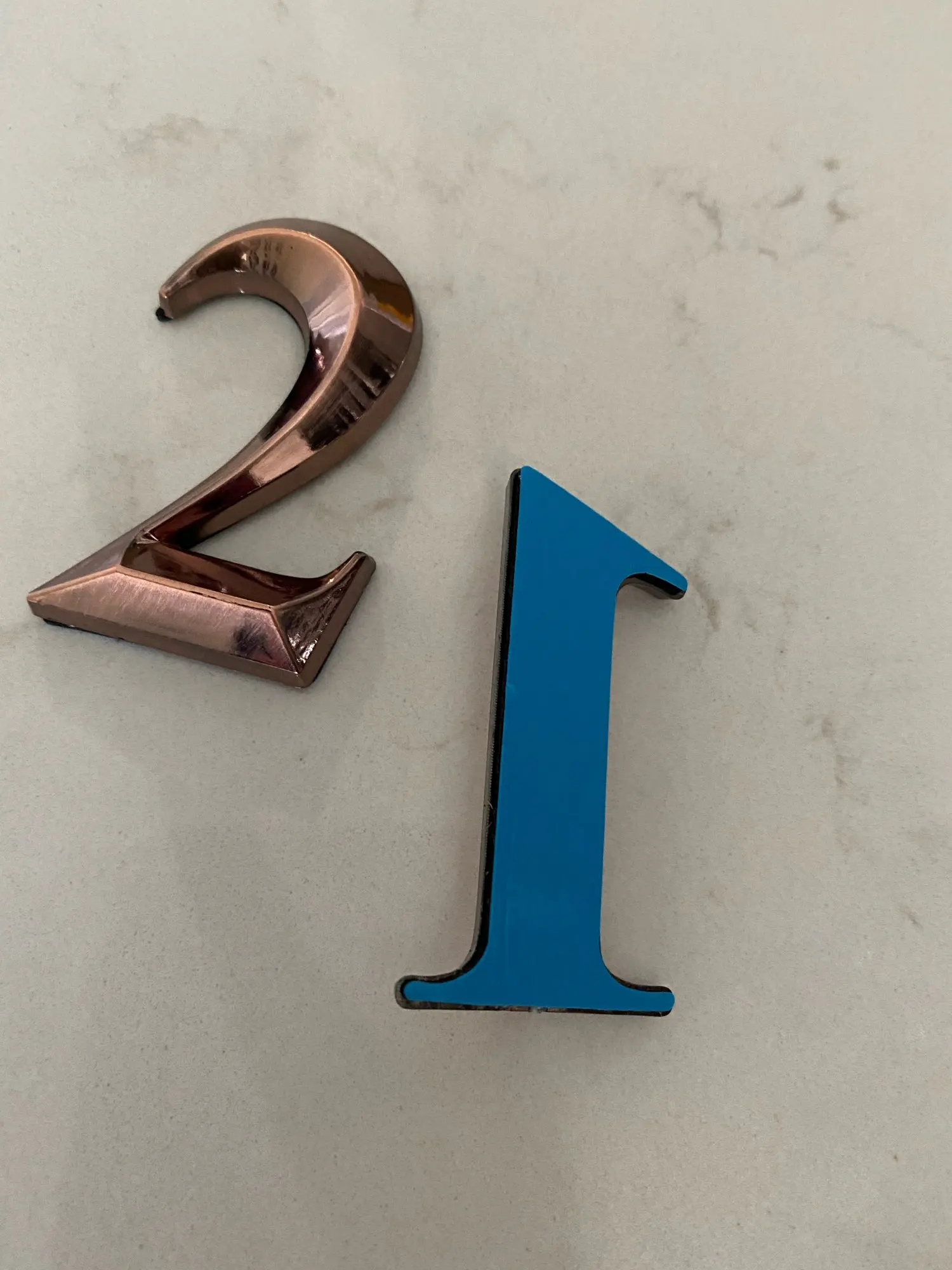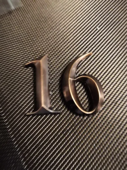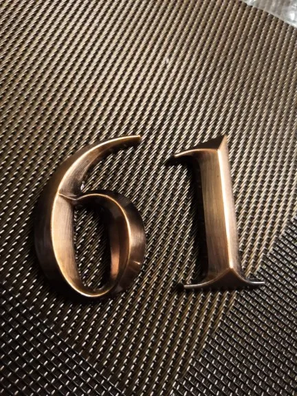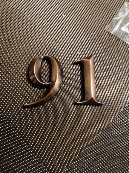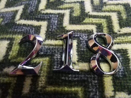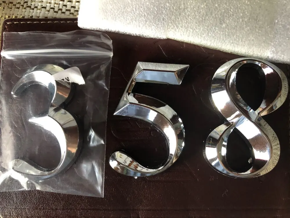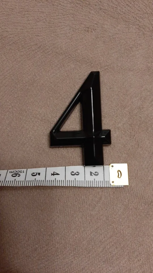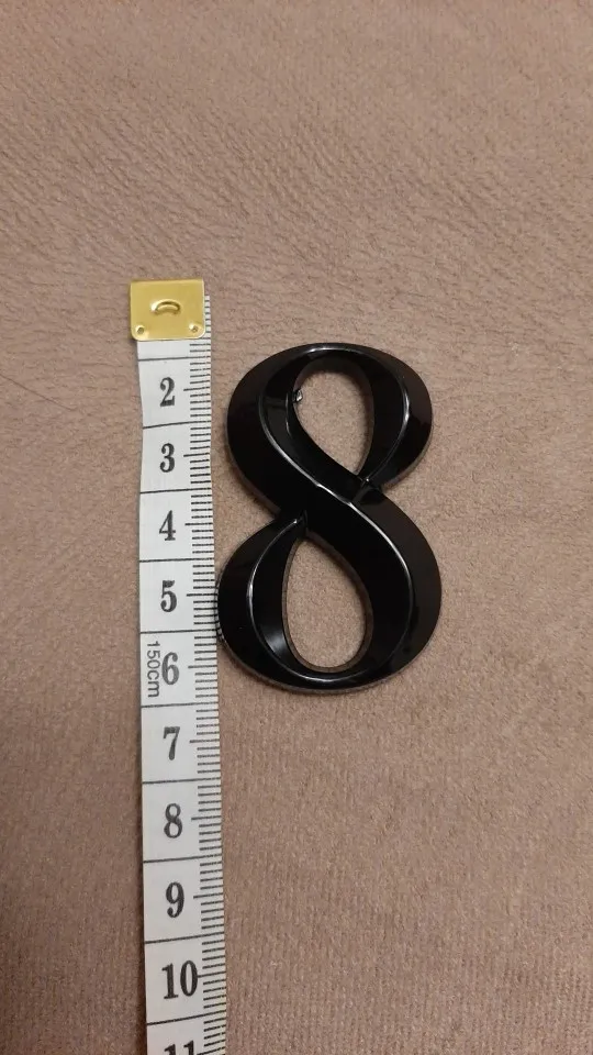 Отличные цыфры, пластик, но очень качественно выглядит, нет ни царапин ни заусенцев. Смотрится отлично, на входную дверь 5см достаточно. Только клеить сразу ровно, переклеить не получиться, очень держит крепко.