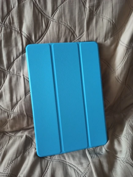 Чехол очень хороший. Постороннего запаха нет. В подарок идёт защитная пленка для планшета и стилус. Цвет синий при свете очень насыщенный и красивый. На углах защита. Из-за коробочки для стилуса планшет становится шире и кнопки сбоку нажимаются как бы отдаленно от самого края планшета, но работают без нареканий. При откидывание крышки планшет включается, проблем с этим не заметила. Ставить планшет можно в трёх положениях, одна сторона как бы складывается треугольником и фиксируется при помощи магнита, поэтому стоит довольно крепко. Единственное, этот чехол делает планшет достаточно увесистым, но это сильная проблема для меня.