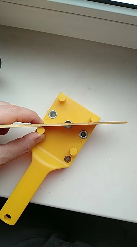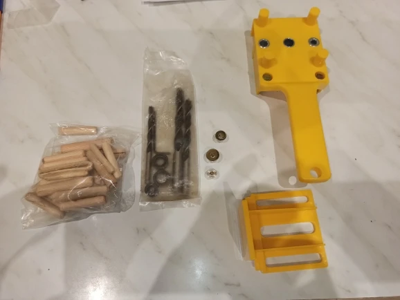 Кондуктор хороший. Без люфтов. Упор и платформа 90° между собой(видно на фото). Между упорами равные расстояния, торцевые отверстия на трёх диагоналях будут идти по центру. сверла в комплекте так себе, на уровне самых дешёвых в леруа. Шканты хорошие. Заказал 04.11, отправлено 06.11, в МО приехало аж 19.12