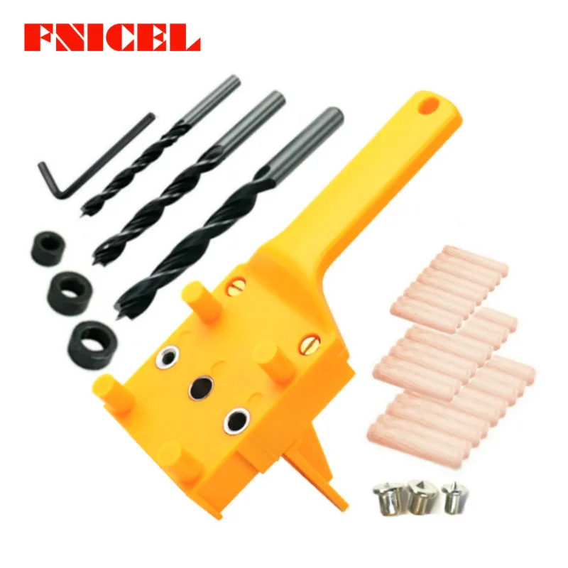 Направляющая для сверла, дюбель для деревообработки дюйма, с 3 металлическими штифтами, 6, 8, 10 мм, набор для сверления отверстий по дереву