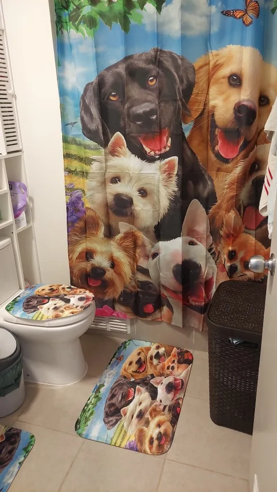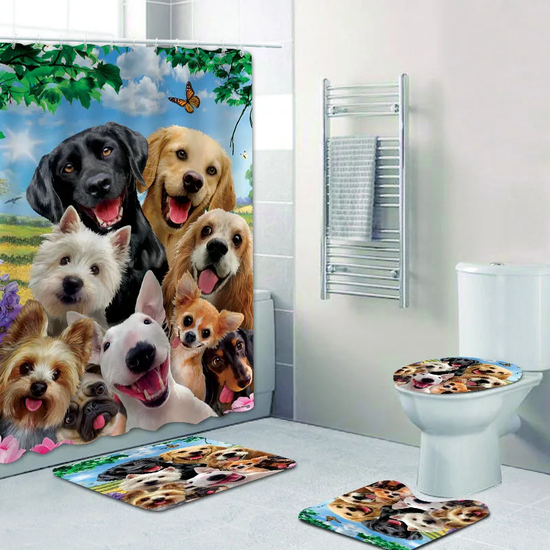 Забавная душевая занавеска С улыбающимися собаками, занавеска для ванной комнаты, занавеска для собаки, мамы, папы, домашний декор, занавеска для ванной с бультерьером, набор ковриков для туалета