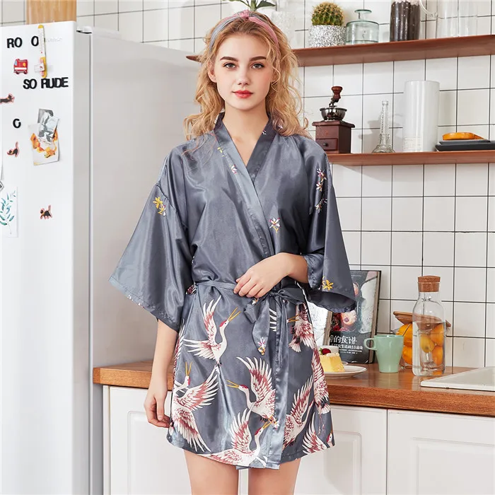 Короткие халаты, Пижама для женщин, экзотическое шелковое кимоно с ...