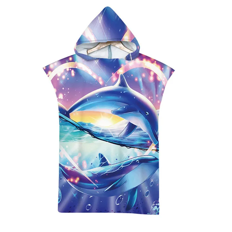 Пляжное полотенце с капюшоном в океаническом стиле, сменный халат из микрофибры для Гидрокостюма, пончо, полотенце для серфинга, для бассейна, пляжный банный Халат
