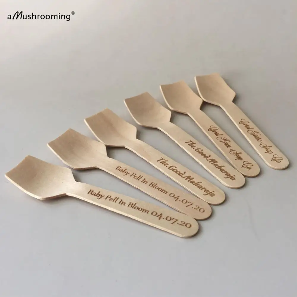 200 шт лазерная гравировка деревянные Мини-ложки биоразлагаемые чайные ложки Десерт Мороженое Ложки для сахара вечерние украшения чая