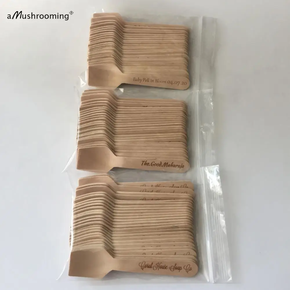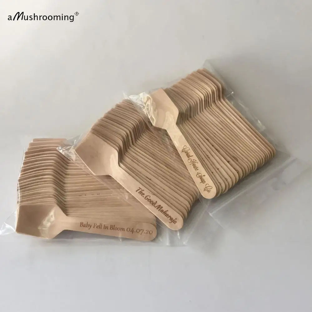 200 шт., деревянные биоразлагаемые чайные ложки с лазерной гравировкой