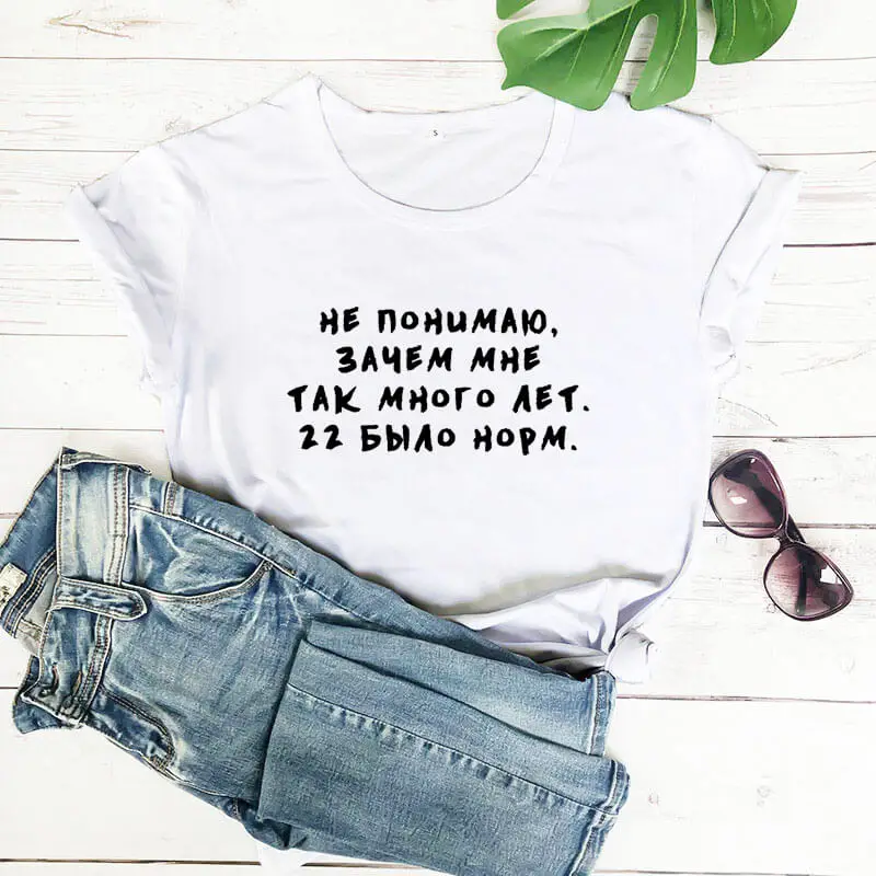 22 норм было русскими буквами Новое поступление женские забавные повседневные рубашки из 100% хлопка женский милый пуловер футболка