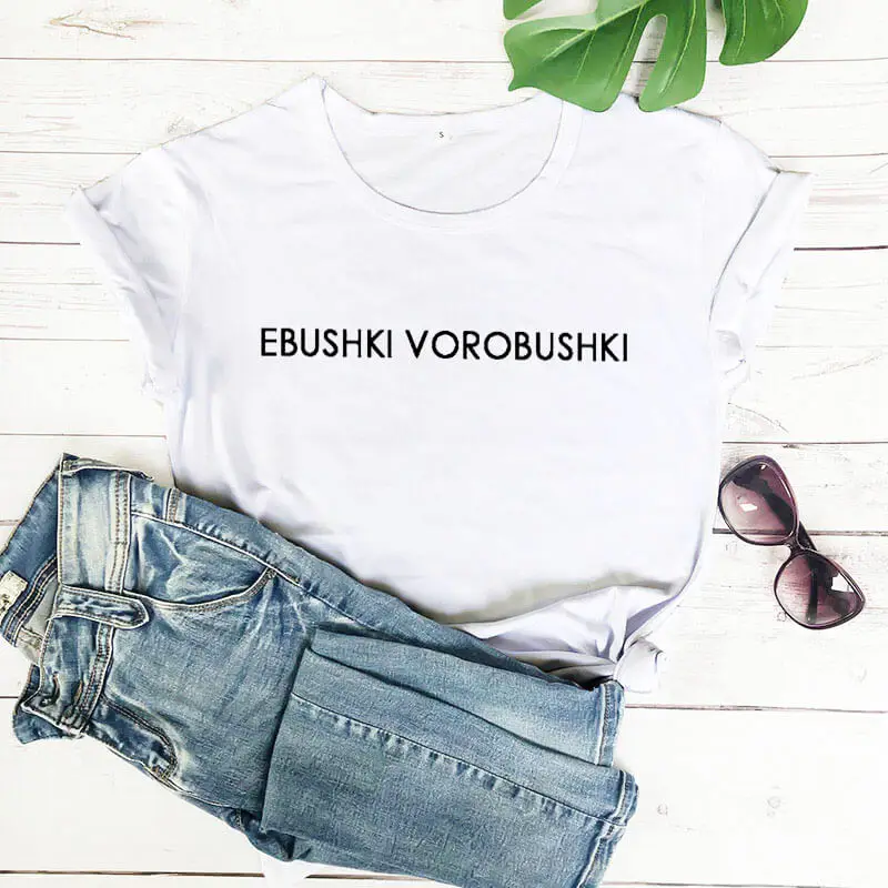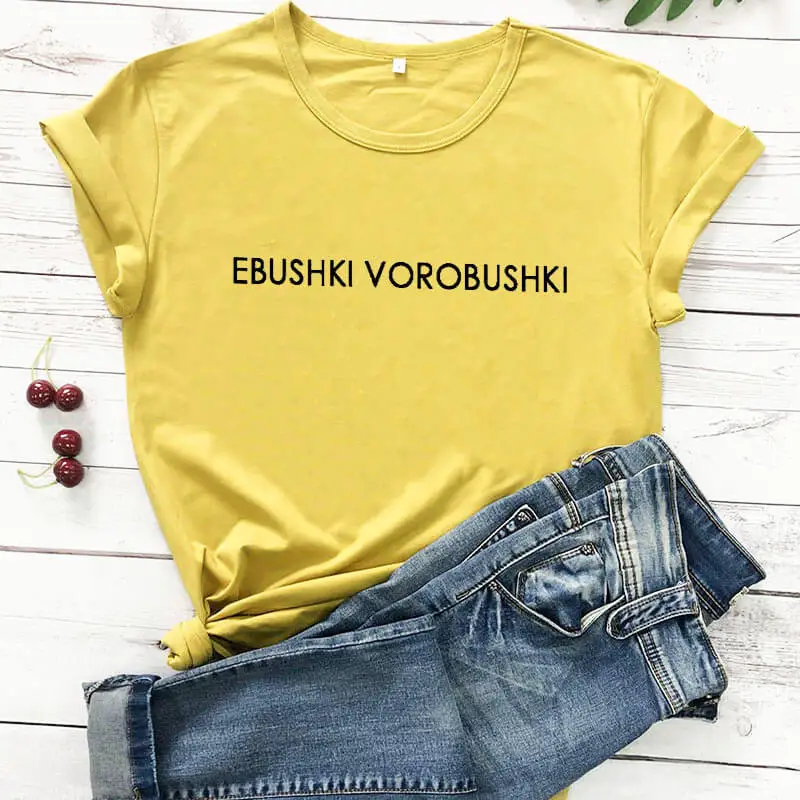 EBUSHKI VOROBUSHKI русскими буквами Новое поступление женские забавные повседневные рубашки из 100% хлопка женский милый пуловер футболка