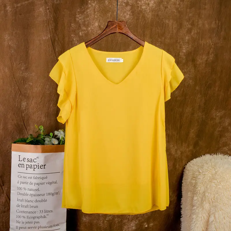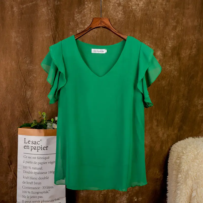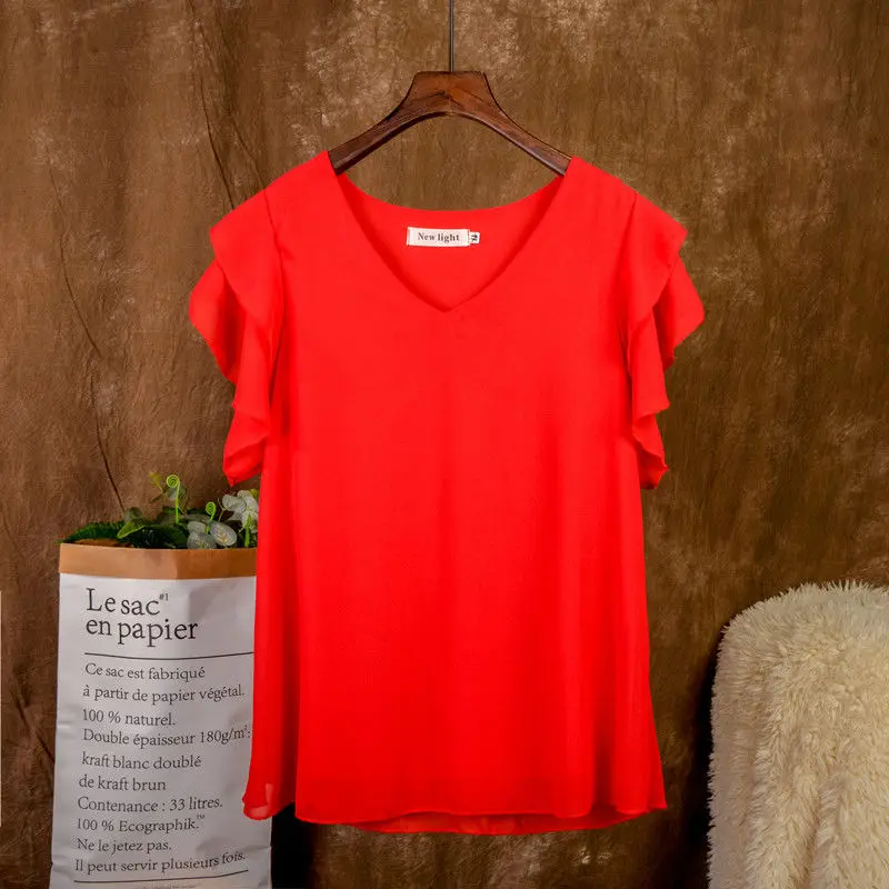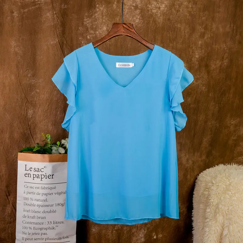 Модная брендовая одежда , футболка с коротким рукавом женская блузка , Новое поступление, летняя шифоновая рубашка прозрачная v-образный мысок; Повседневная Блузка размера плюс 5XL свободные женские топы