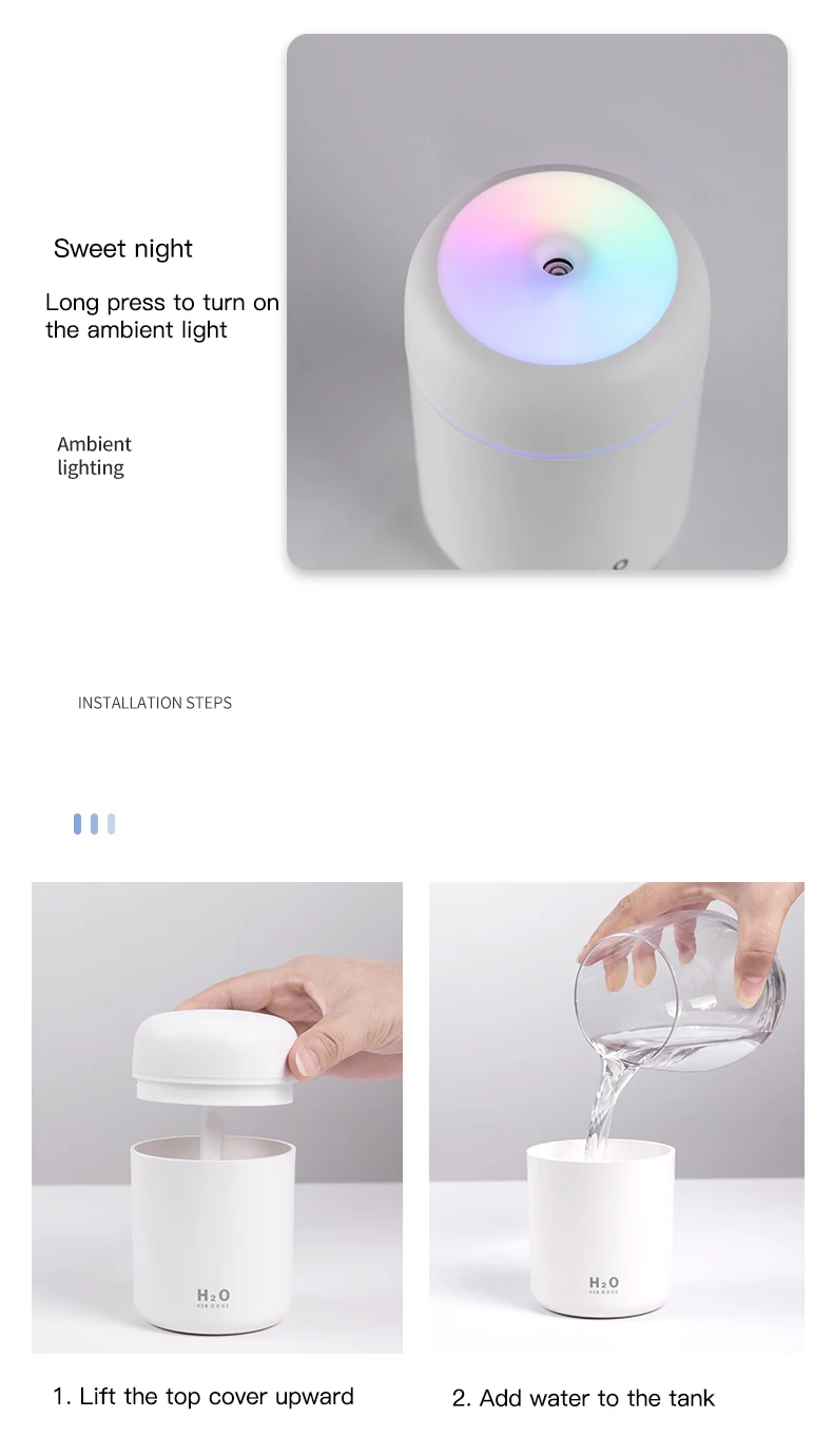 Мини-увлажнитель воздуха, 300 мл, USB, с романтической лампой