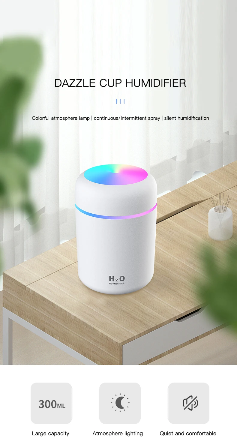 Цветной классный мини-увлажнитель, USB 300 мл, портативный, 7 цвето...