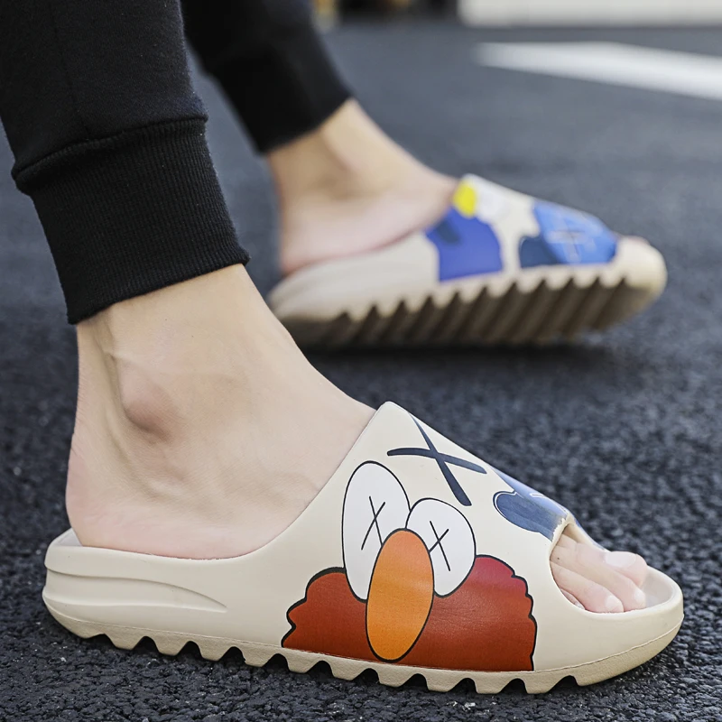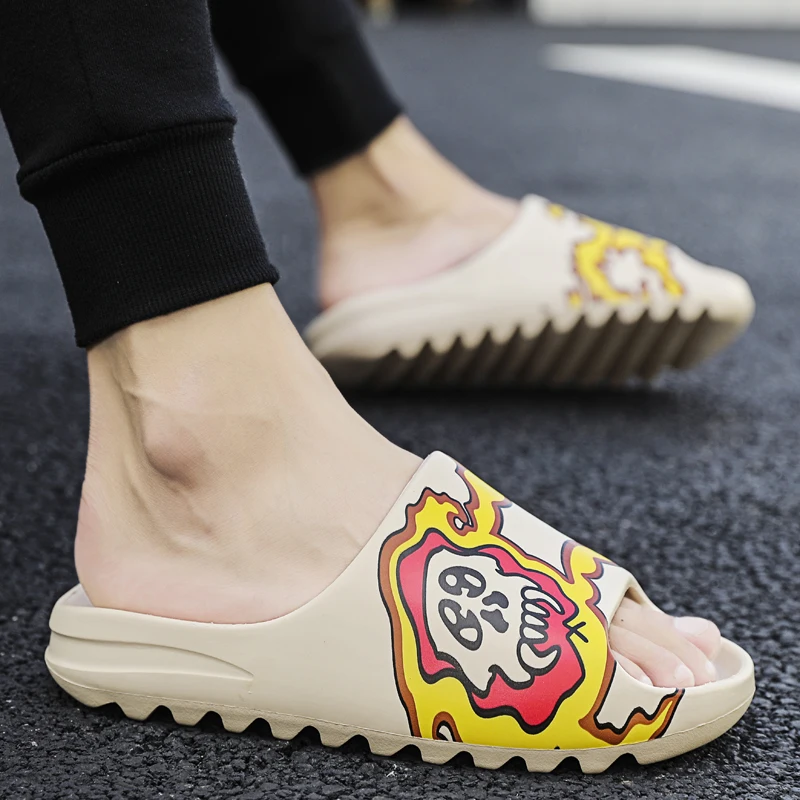 Мужские летние крутые пляжные шлепанцы 2020 г. Модные Вьетнамки с открытым носком женские сандалии обувь с принтом граффити легкие большие размеры