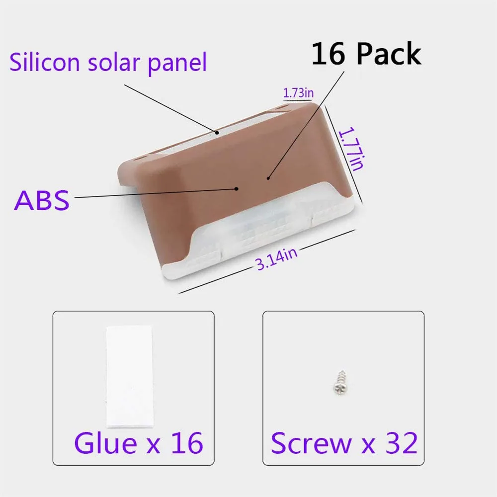 【 Аккумулятор 300 мАч каждый солнечный светильник с 3 люменами, теплым белым светодиодом, 16 упаковок добавят безопасность и мягкое свечение к вашей палубе, крыльцу или другой наружной конструкции, делает ночную прогулку безопасной для семьи.