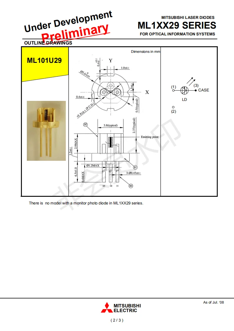 Mitsubishi ML101U29-25 400 мм красный нм МВт лазерный диод LD (абсолютно новый)