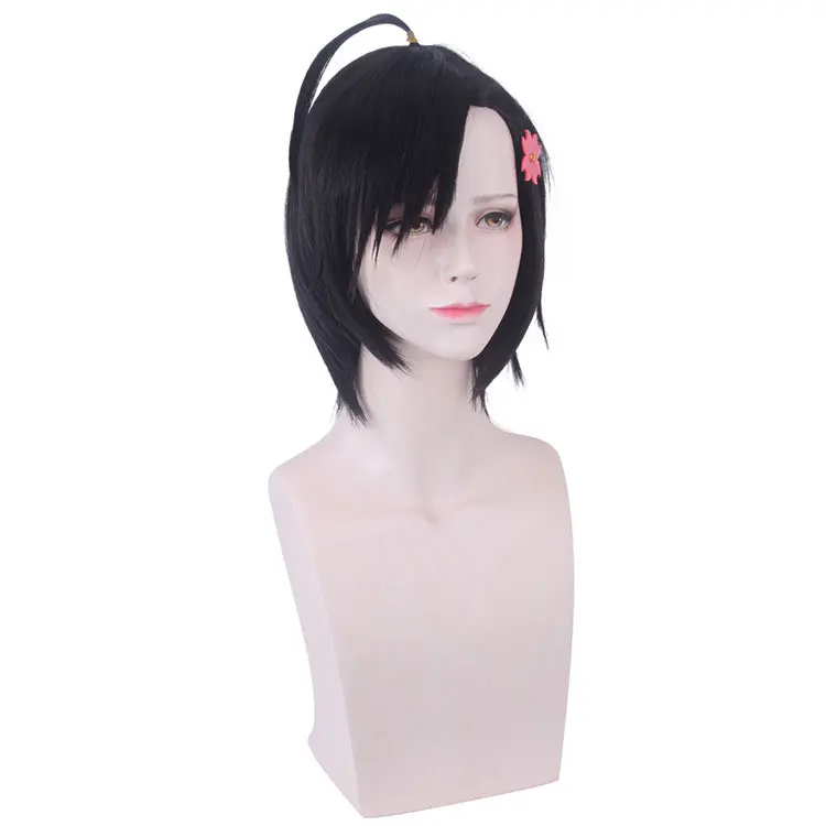 Парик для косплея Koharu Hondomachi + зажим для волос с цветами, головной убор из черных синтетических волос, вечерняя повседневная одежда, парики для косплея