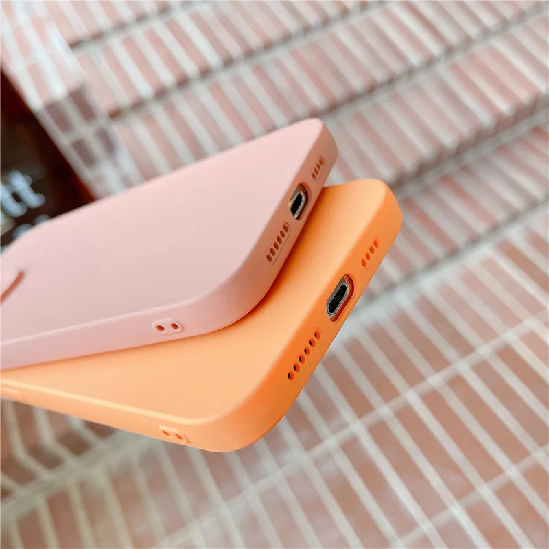 Цветной жидкий квадратный силиконовый чехол Macaron для телефона IP...