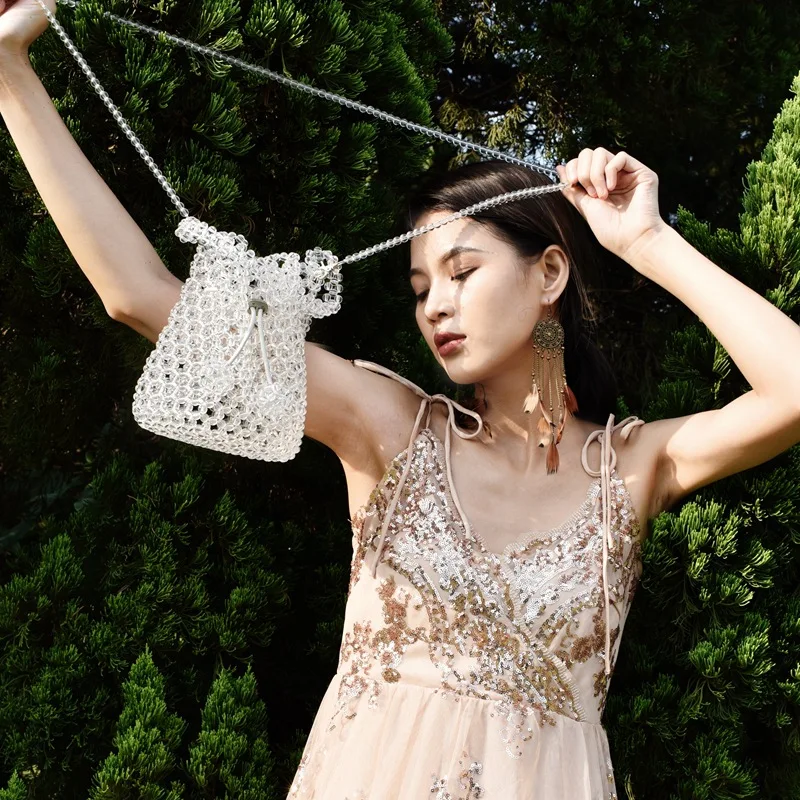 22x19,5 см 2020 новая нишевая дизайнерская акриловая плетеная сумка ручной работы с бусинами сумка-мешок женская сумка на плечо a5935