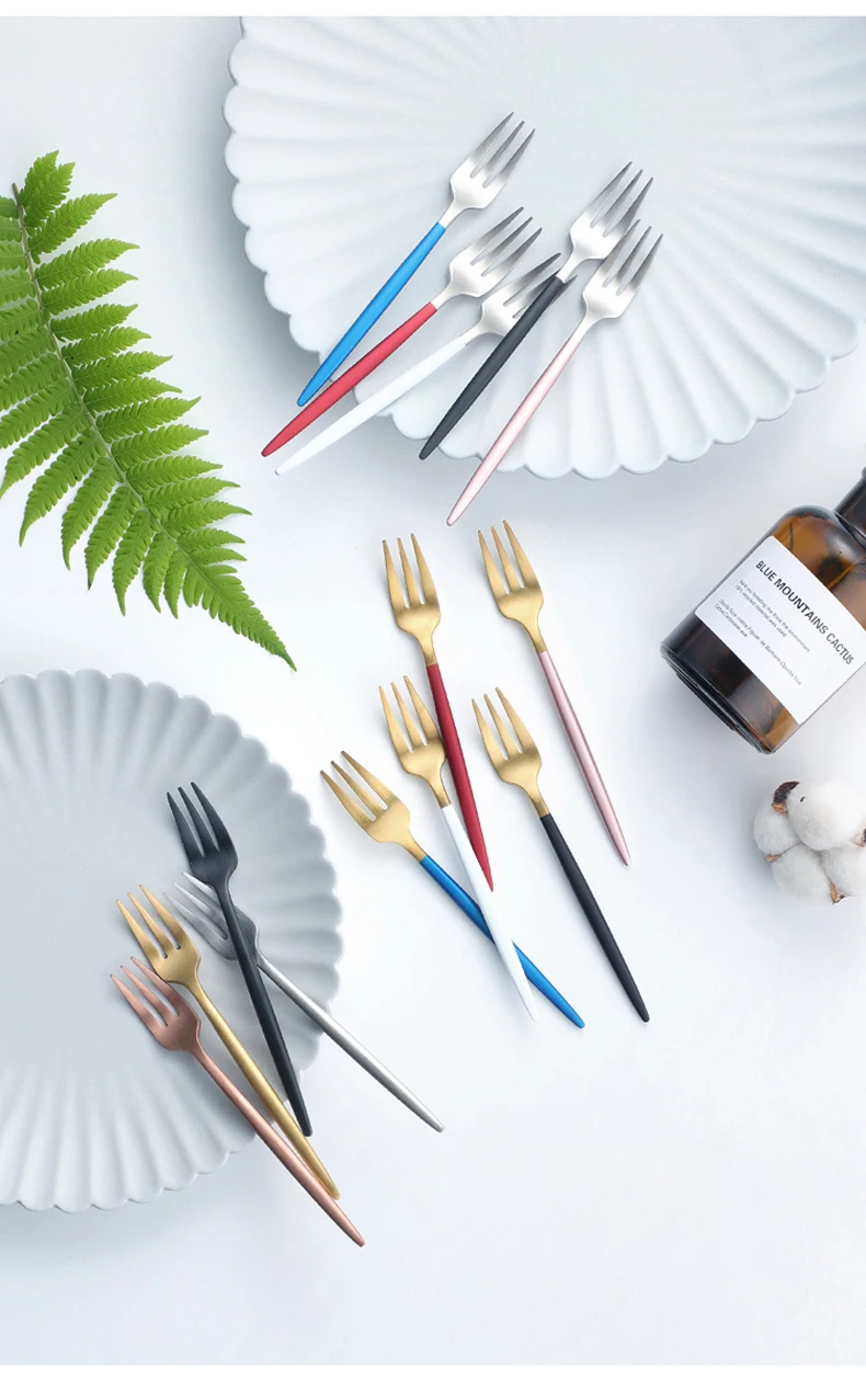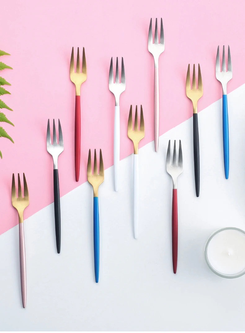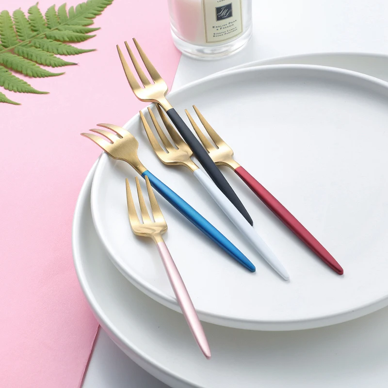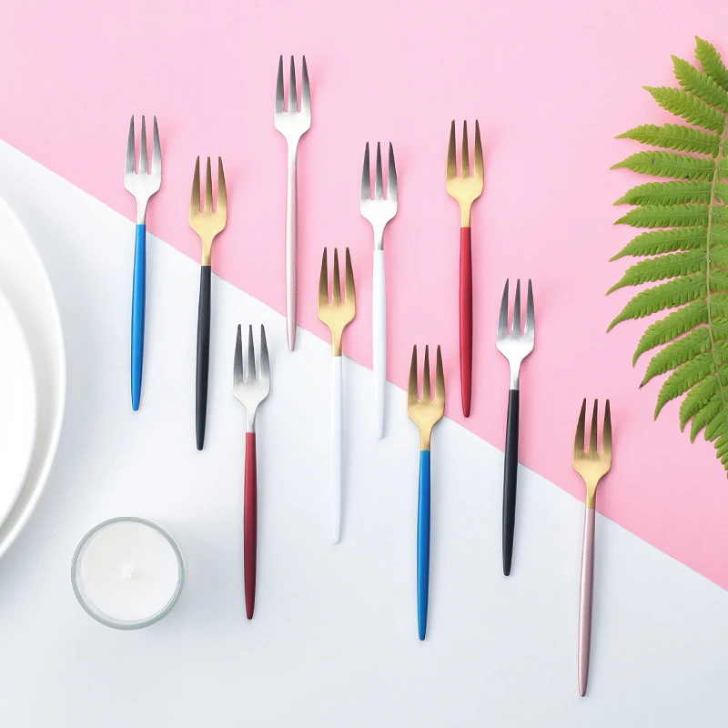 Вилка для фруктов, 1 шт., 304, из нержавеющей стали, для торта, Черное золото, цветные чайные столовая вилка, набор, товары для отеля, вечеринки, ресторана