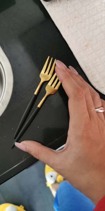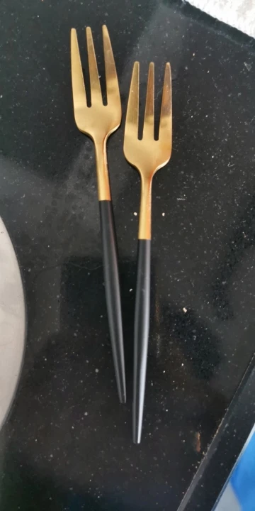 Отличный комплект! Очень рекомендую! Заказывал у этого продавца и у другого с аналогичными столовыми приборами. У этого продавца качество оказалось намного лучше! Все вилки, ножи, ложки сделаны из металла толще, чем у других продавцов. Из-за чего столовые приборы чуть тяжелее и лучше лежат/ощущаются в руке. Плюс золотая часть тут матовая, а других блестящая. В Краснодар доставили за 27 дней