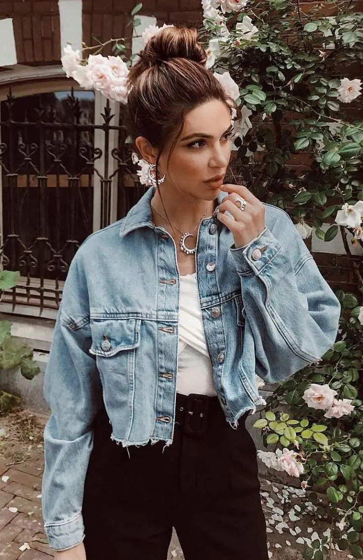 Демисезонная укороченная джинсовая куртка для женщин, Повседневная синяя джинсовая куртка в стиле бойфренда с длинным рукавом, Женский винтажный укороченный топ на пуговицах, 2021