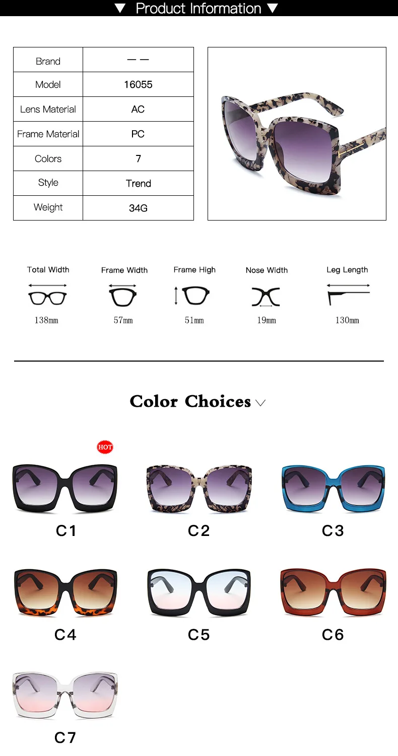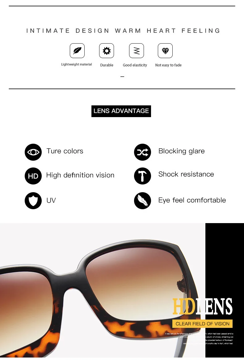 Солнцезащитные очки женские, квадратные, в стиле ретро, с большой оправой и градиентом, леопардовые, винтажные, UV400