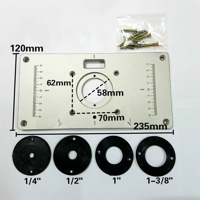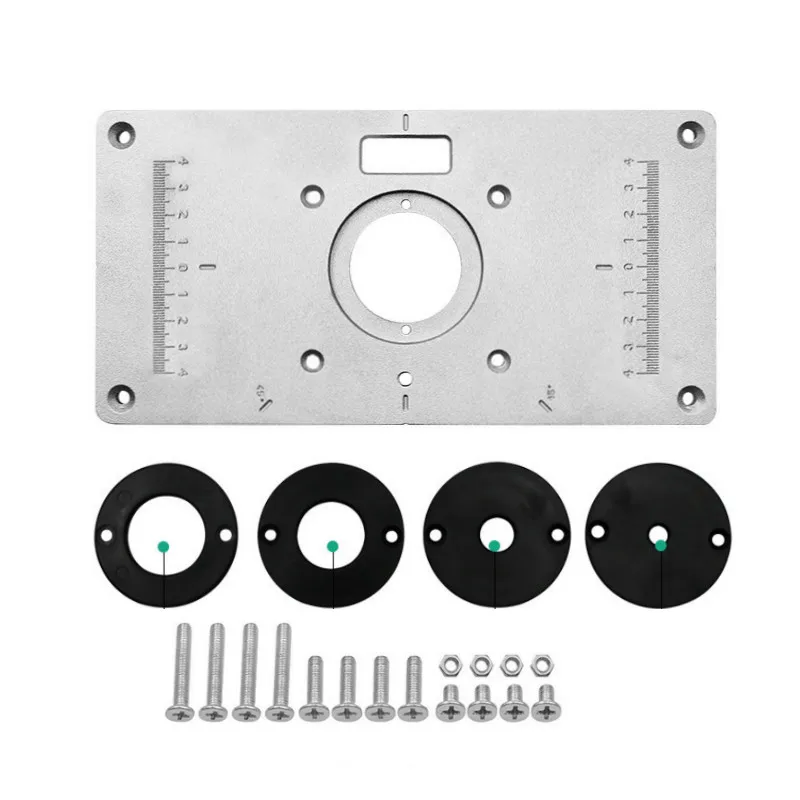 1x алюминиевый сплав маршрутизатор Таблица вставки пластины4x Фасонная фреза по пластмассе кольца со вставкамиНекоторые крепежные винты