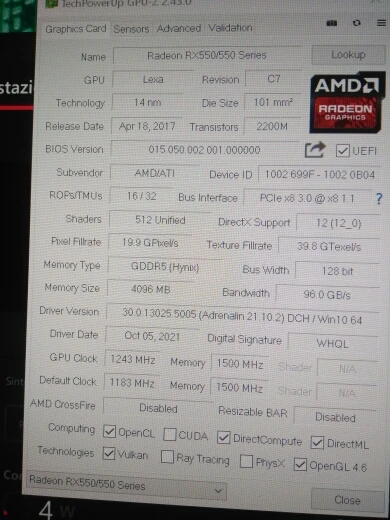 Страна: IT Color: RX 550 4G Доставка: Standard Shipping 20.12.2021
