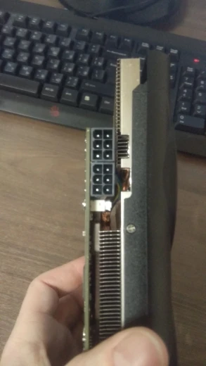 Карта доехала очень быстро. За 2 недели. Доставил курьер EMS, несмотря на то, что доставка была Standart. Качество упаковки не выдержало натиска почты и в коробке в итоге была дырка насквозь, до самой видеокарты. Но видеокарта не пострадала. Выглядит довольно забавно. Маленькая. Как новая, но кривой текстолит и погнутые ребра радиаторов. Пока работает хорошо. В 100% загрузке показывает потребление в 100 Ватт и греется до 65 град. Посмотрим сколько проработает. В коробке кроме карты больше ничего. Никаких бумажек или еще чего-то.