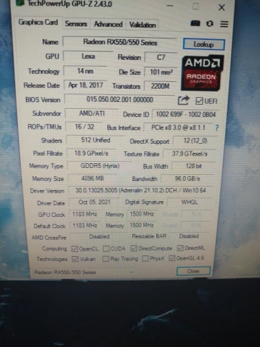 Страна: RU Color: RX 550 4G Доставка: Standard Shipping 10.12.2021