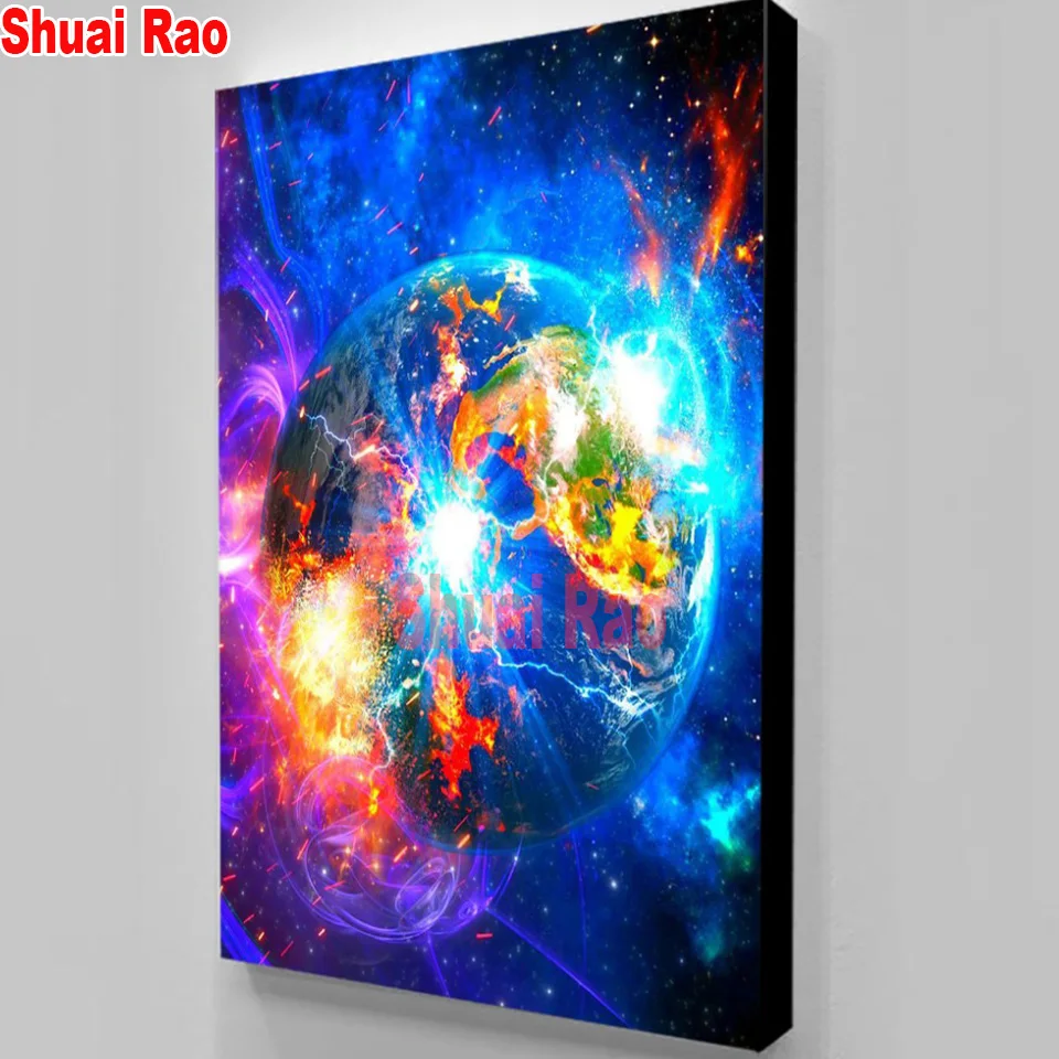 Космическая земля Алмазная мозаика галактика звезды, 5d diy Алмазная вышивка полная круглая дрель 3 d алмазная живопись настенные наклейки,