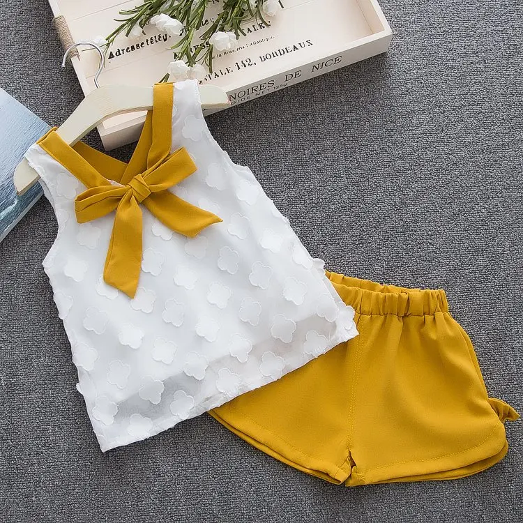 Одежда для маленьких девочек Лидер продаж, летние детские комплекты одежды для девочек детская одежда для малышей, шифоновое пальто с бантом + штаны, От 1 до 7 лет