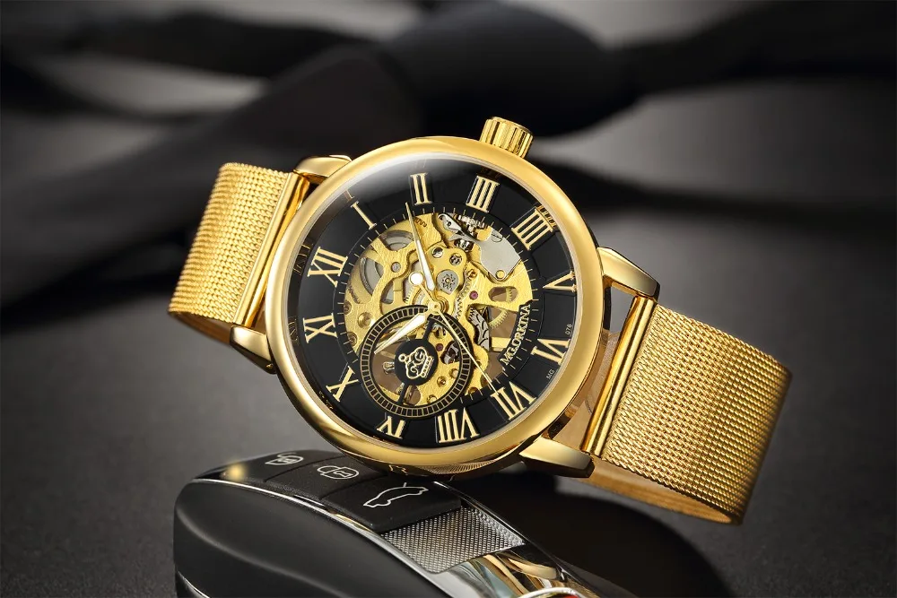 -Чехол для часов из нержавеющей стали и ремешок для часов делают часы более прочными.-Дизайн циферблата со скелетом подчеркивает Вашу модную точку зрения.-Цвет может не отображаться так же, как в реальной жизни из-за различий между компьютерными мониторами и разницы в цвете глаз.Спецификация:-Диаметр: 41 мм-Толщина: 12 мм-Длина ширина ремешка: 23,5 см-Ширина ремешка: 20 мм-Механизм: Механическая намотка-Ремешок часов: ремешок из нержавеющей стали или кожи-Чехол для часов: нержавеющая стальПосылка включает в себя:Спецификация:-1 x механические часы-1 x картонная подарочная коробка JAMEKERНапоминание:1. Перед использованием снимите все пленки.2. Пожалуйста, держите часы подальше от магнита, чтобы избежать остановки работы часов.3. Пожалуйста, Сверните часы перед каждым использованием.