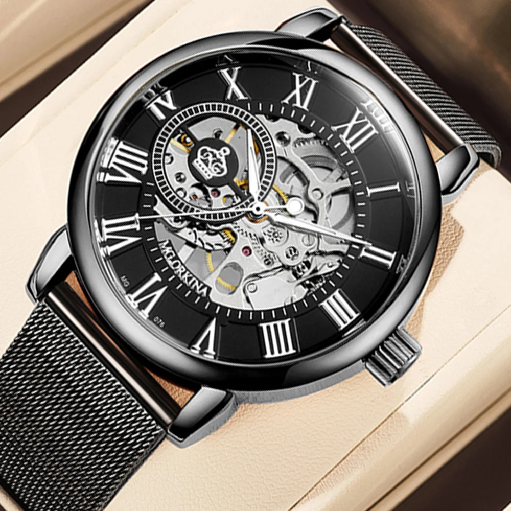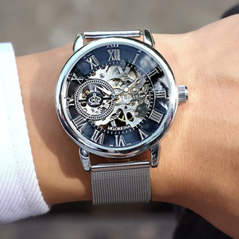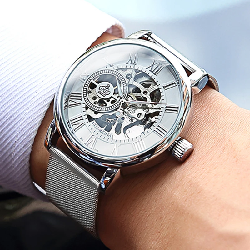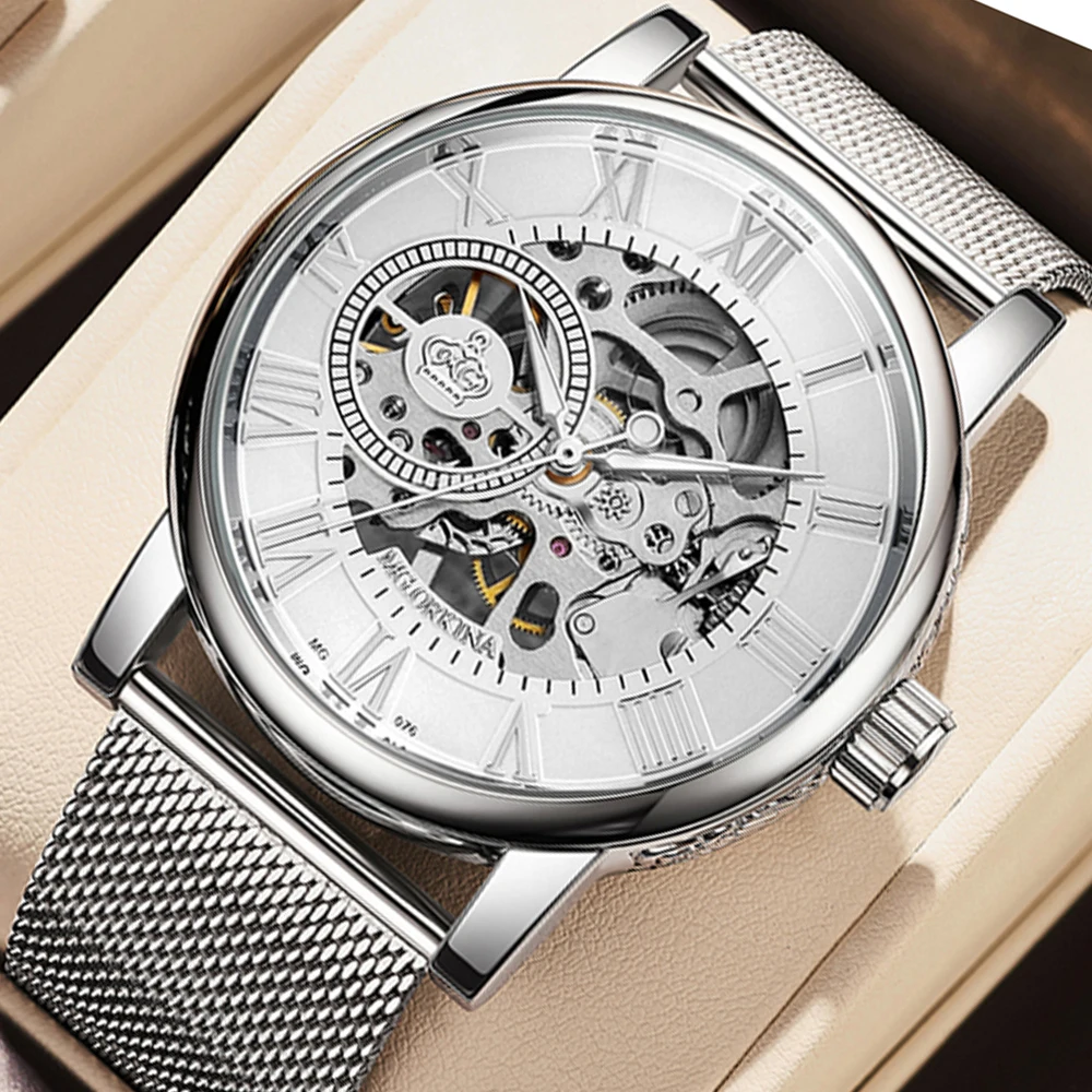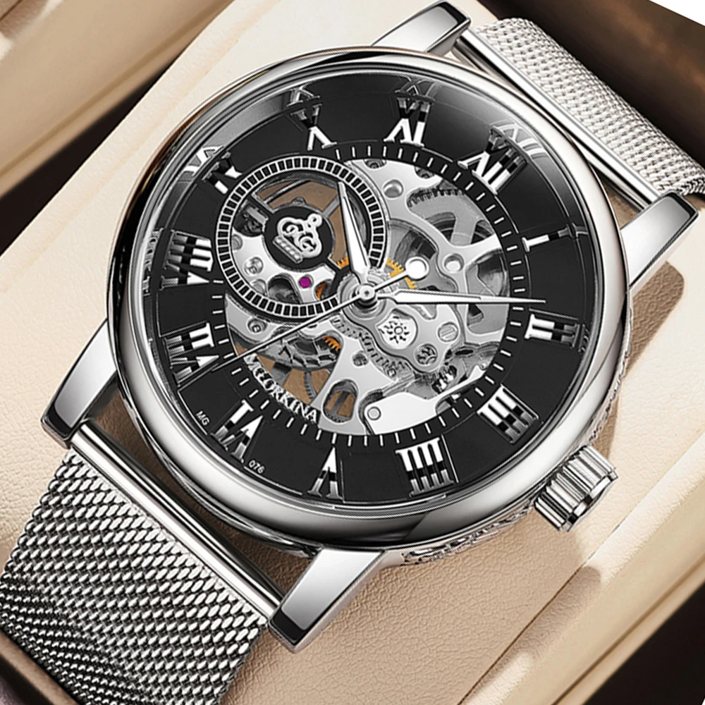ORKINA модные роскошные Брендовые мужские механические часы с каркасом, сетчатые механические часы из нержавеющей стали для мужчин, серебряные часы Montre Femme