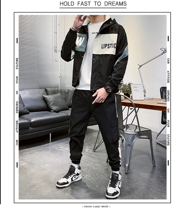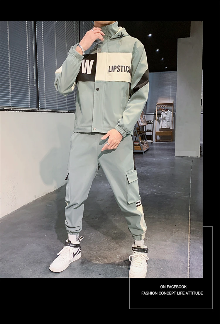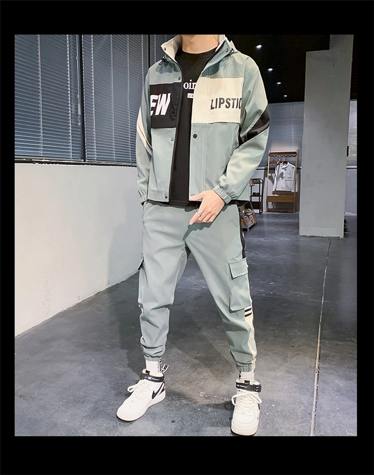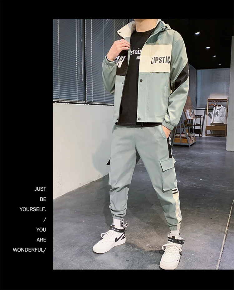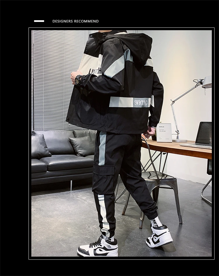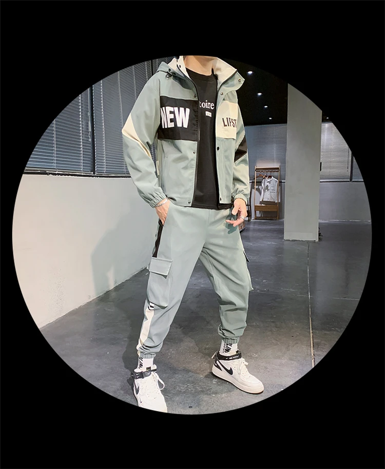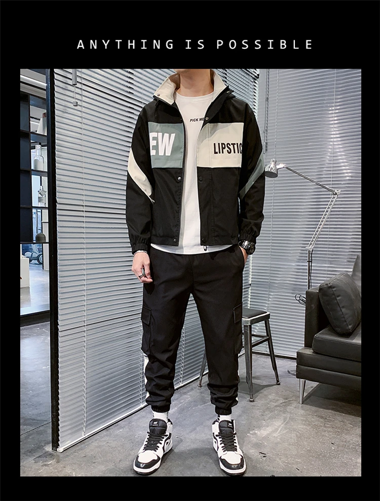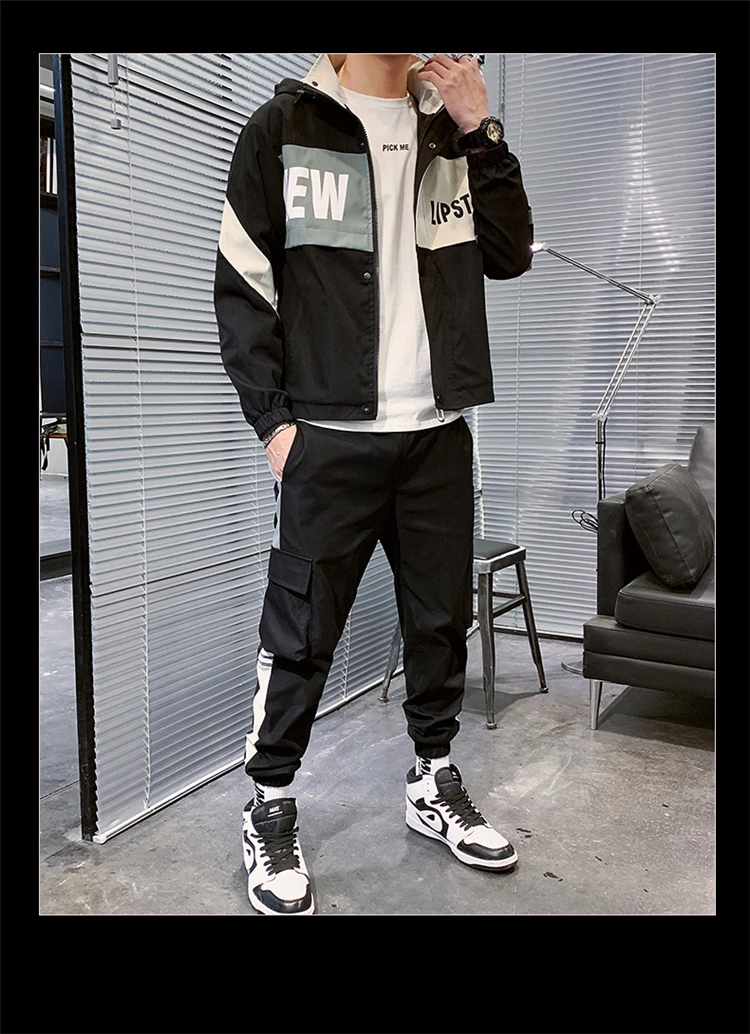 Мужской спортивный костюм, спортивный костюм из двух предметов, куртка с капюшоном и штаны в стиле хип-хоп, комбинезон из полиэстера
