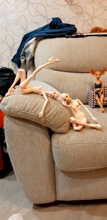 Куколкой очень довольна. Пришла в фирменной коробочке, все аккуратно завернуто: руки, ножки. Каждая кисть в отдельном пакете. Все в комплекте, как заявлено: стопы, кисти, глазки ( продавец положил серые), туфли. Цвет тан красивый. Единственный косяк - криво стоит крышка головы, но это не критично, закроется париком. Натяжка хорошая, может быть не буду перетягивать. Тело хорошо отшлифовано.