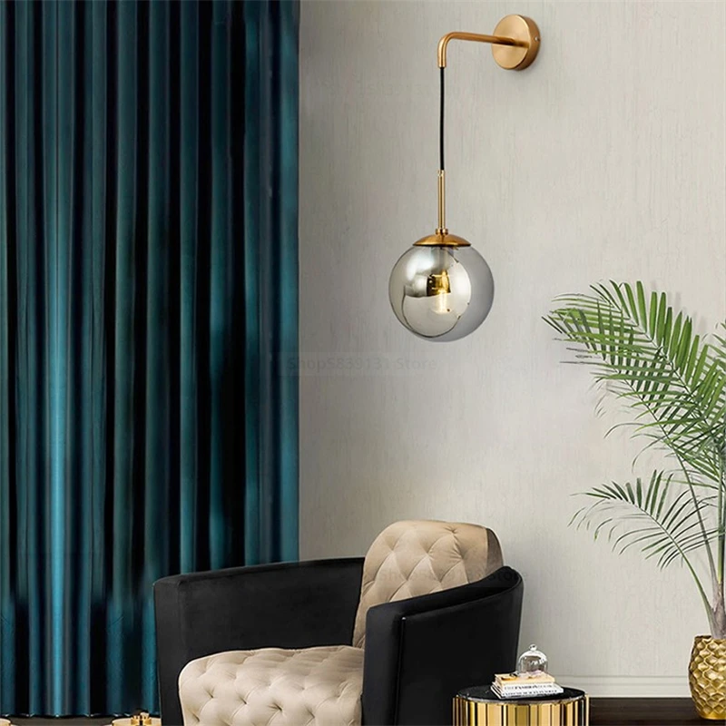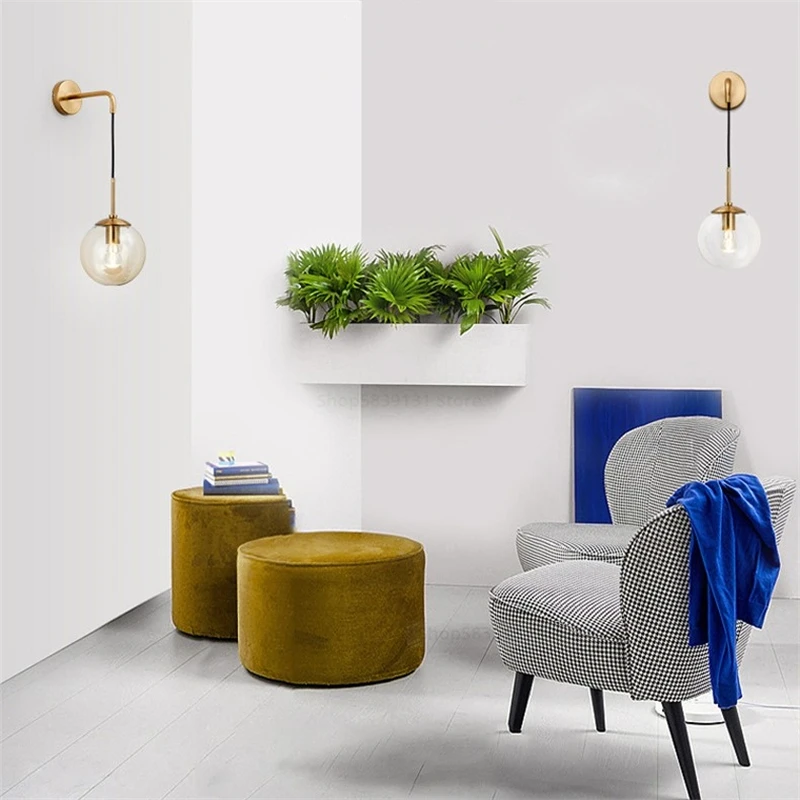 Современные Настенные светильники в скандинавском стиле со стеклянными шариками, простые декоративные прикроватные светильники в стиле ретро для гостиной, коридора, лестницы, светодиодные осветительные приборы