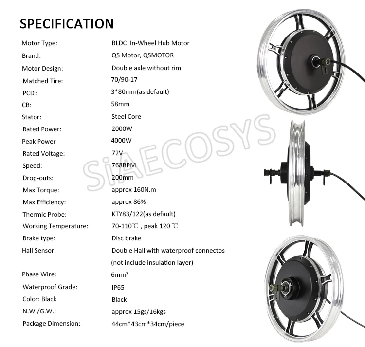 QS мотор 17*1,6 дюймов 2000 Вт 72 в 70 кмч Электродвигатель с программируемым комплектом контроллера для мотоцикла