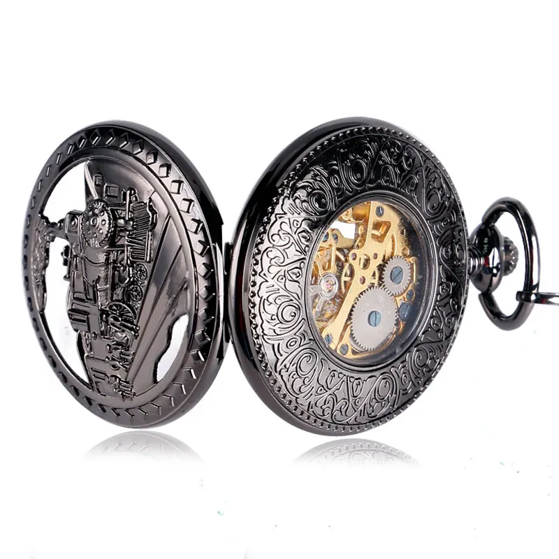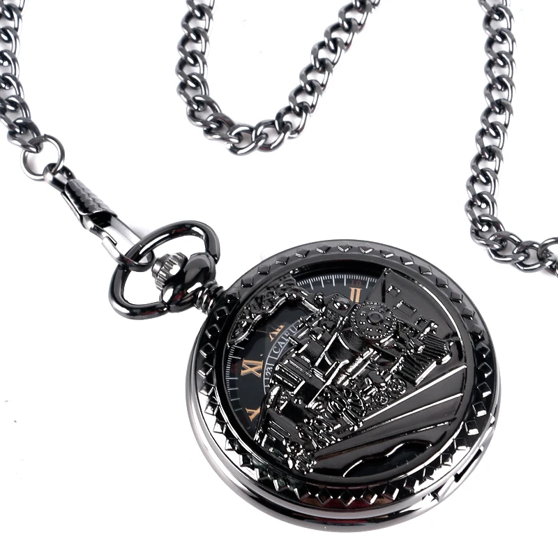 Горячая Распродажа, Механические карманные часы 10 шт.лот с отверстиями, Черный Поезд, винтажные римские часы с циферблатом, ручные наручные карманные часы, оптовая продажа