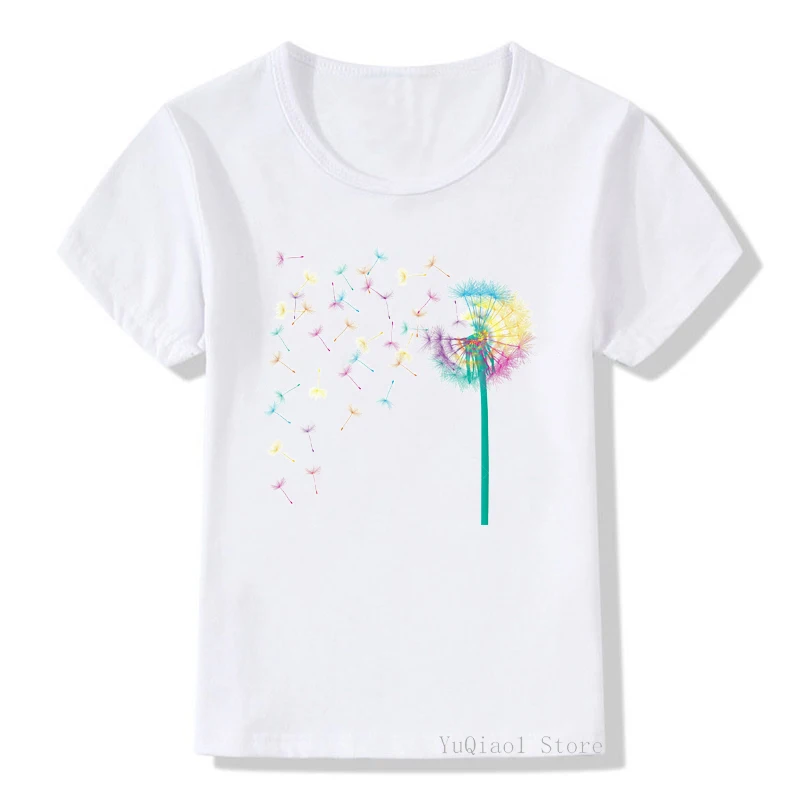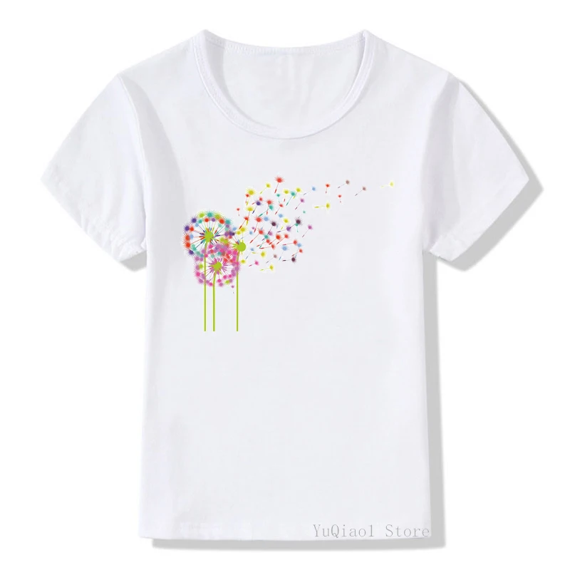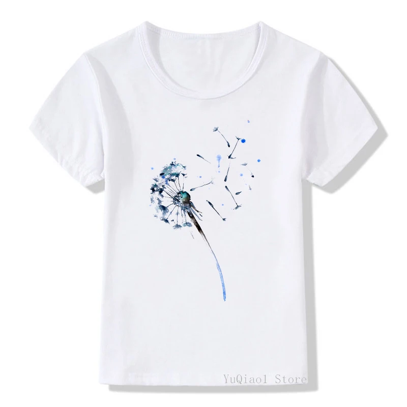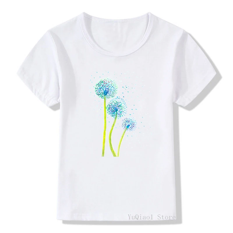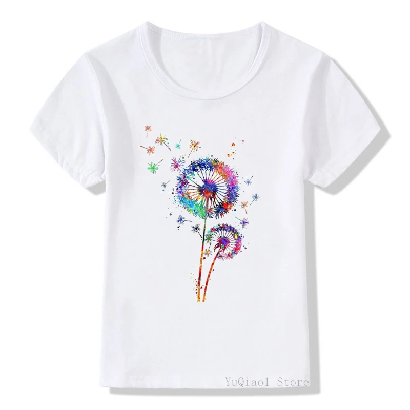 Футболка с акварельным принтом одуванчика, летняя Милая одежда для маленьких девочек, красивые топы, футболки, детская одежда, белая футболка, Детская футболка s