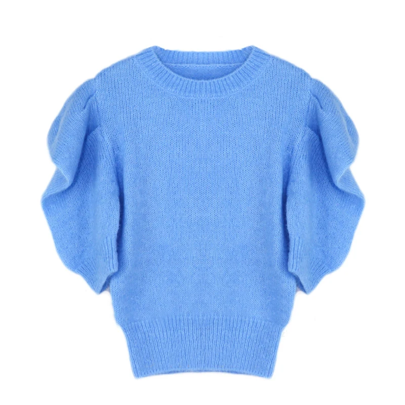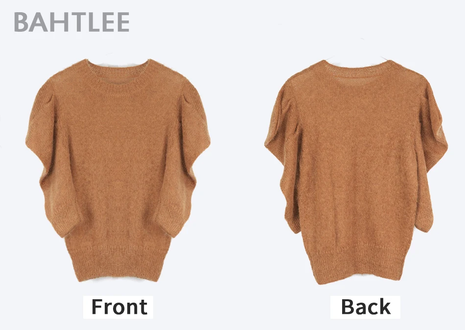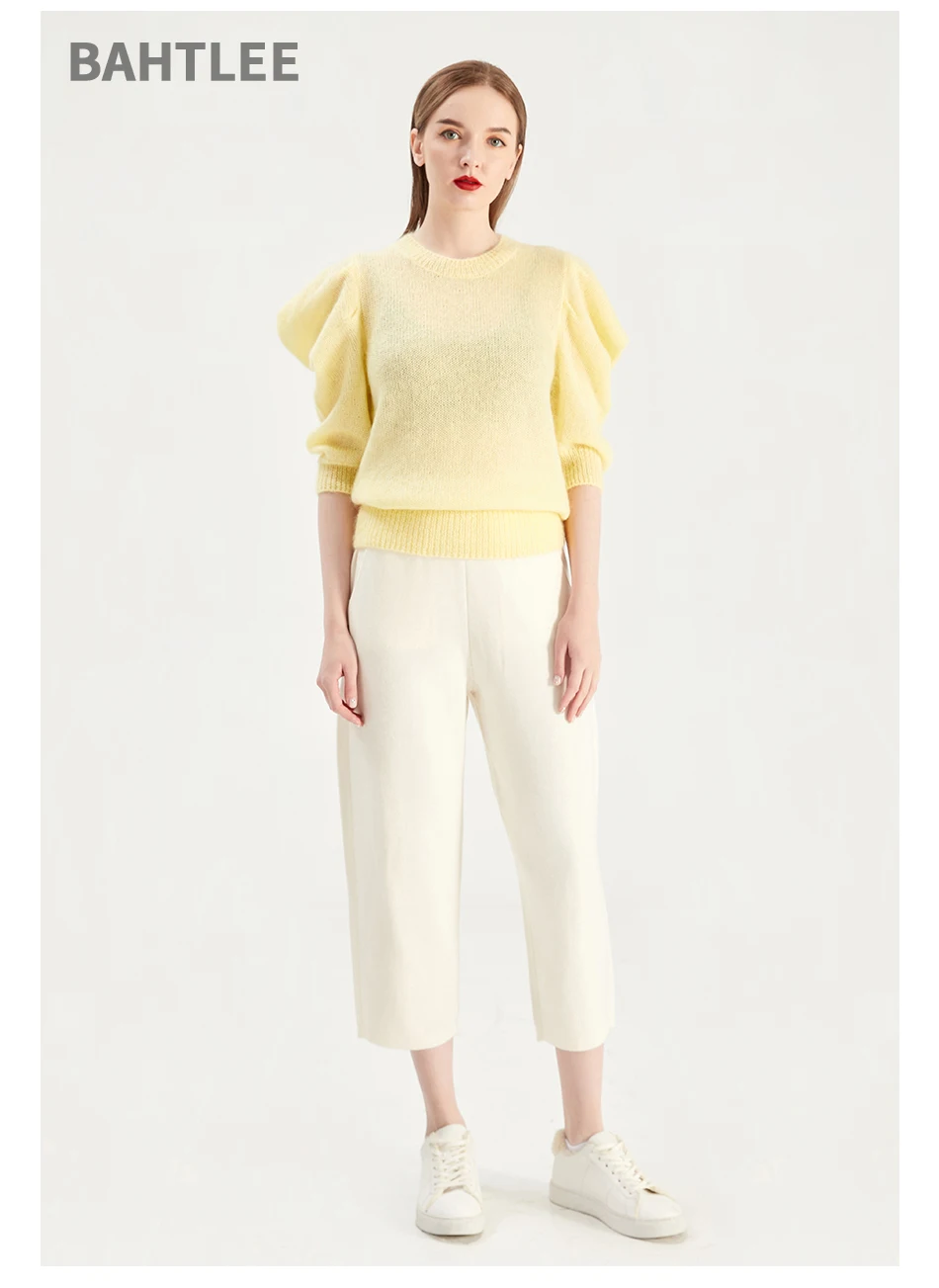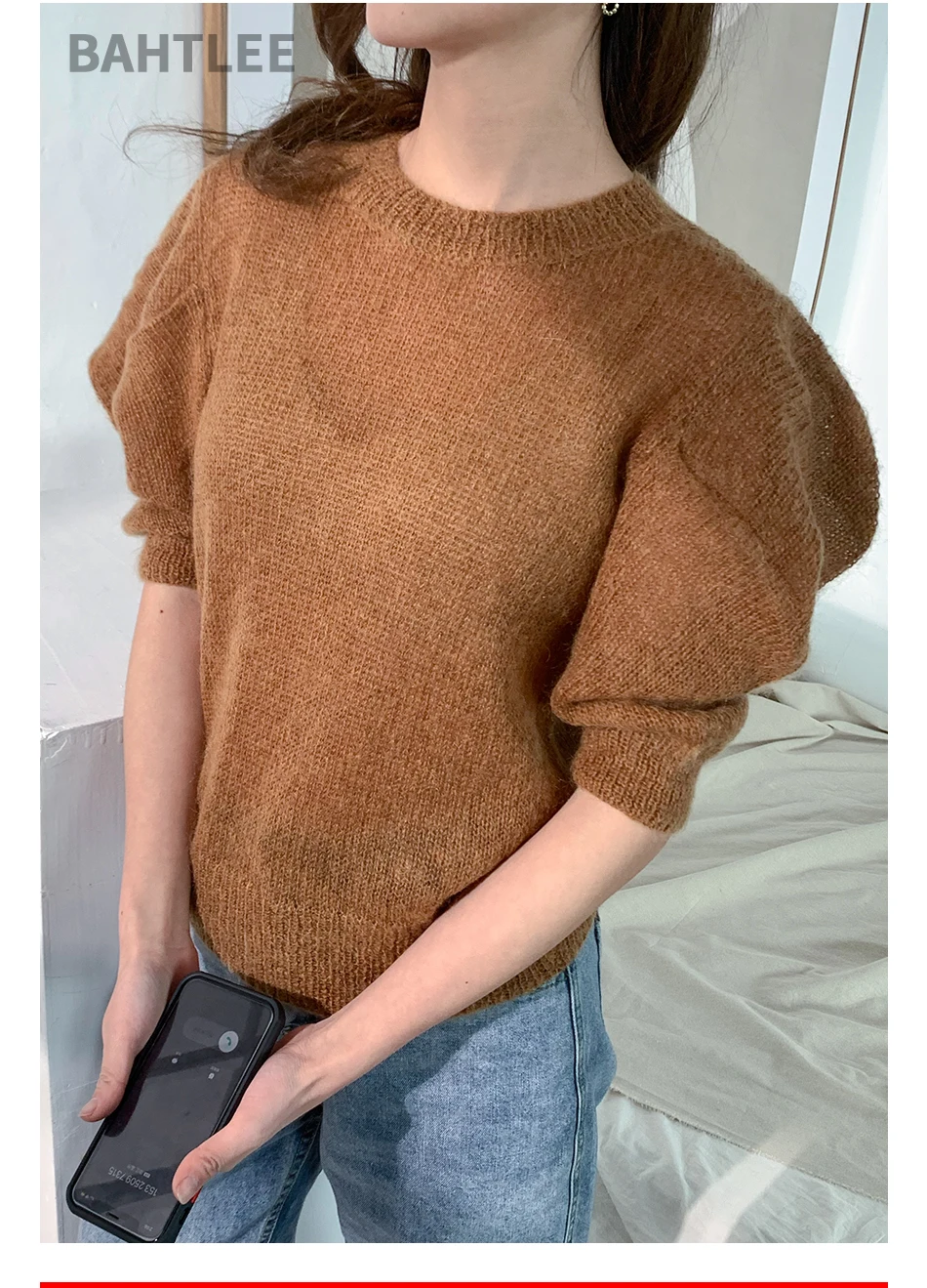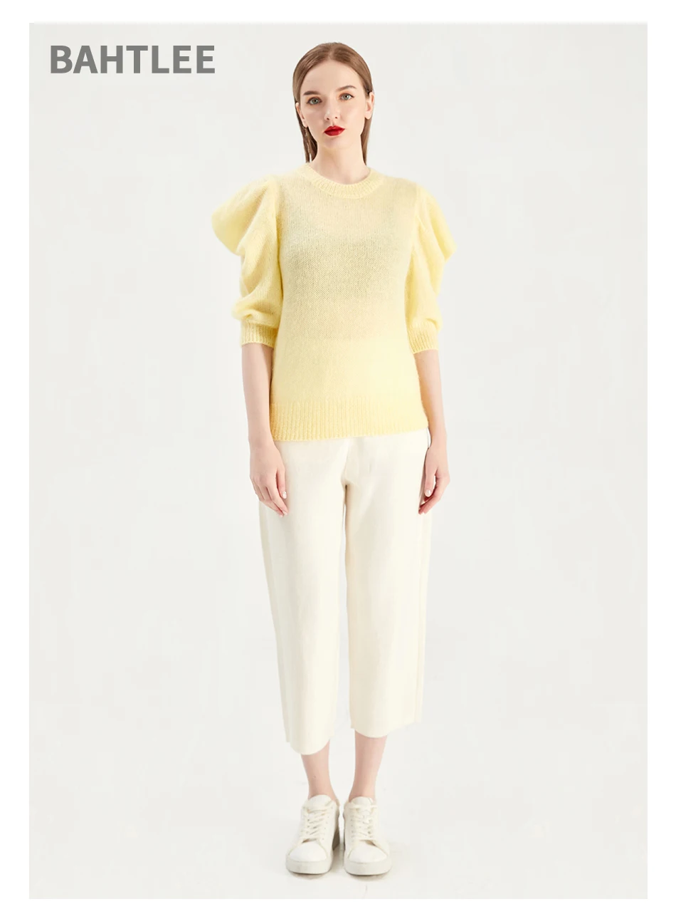 Пуловер BAHTLEE женский из мохера, свитер с круглым вырезом и рукавами-бабочками, шерстяной вязаный джемпер свободного кроя, весна-лето