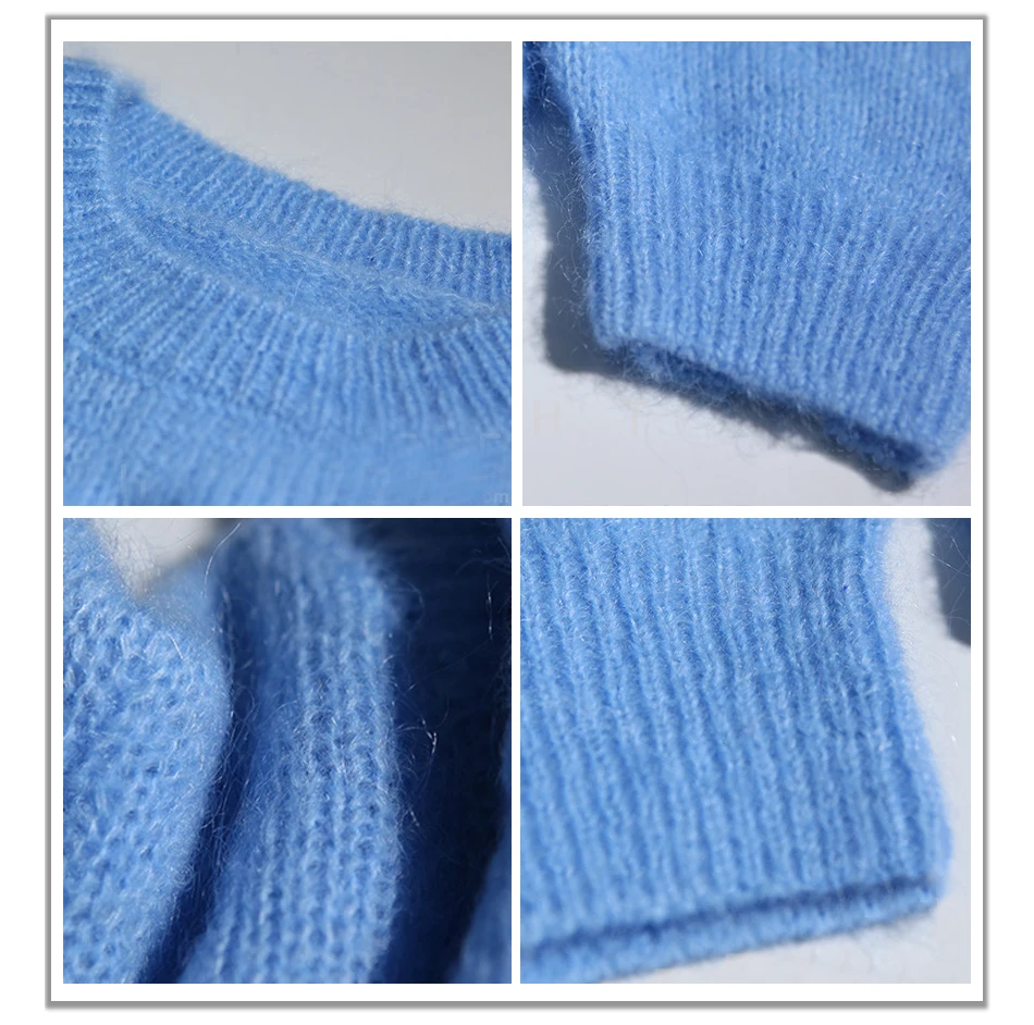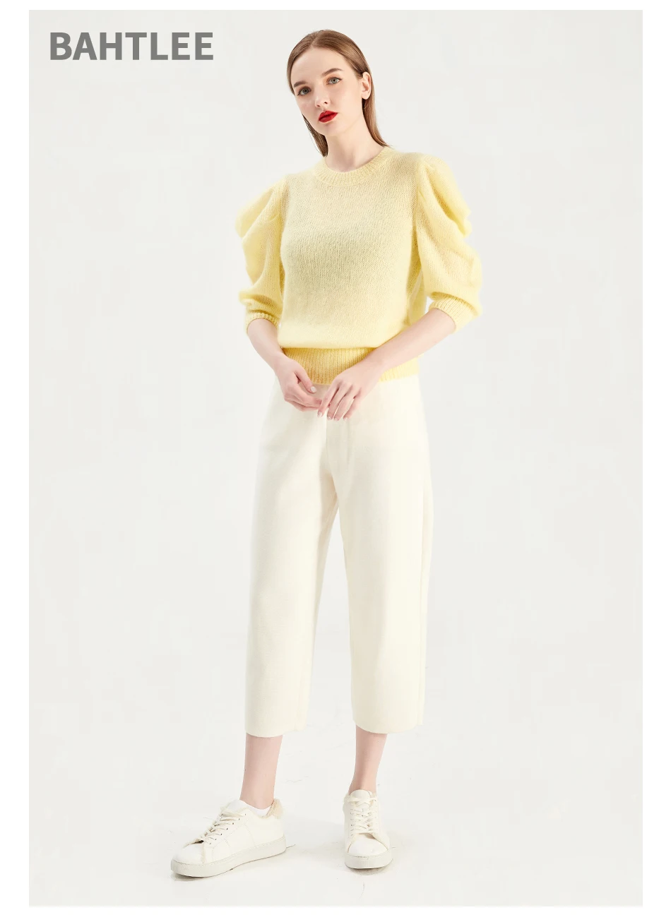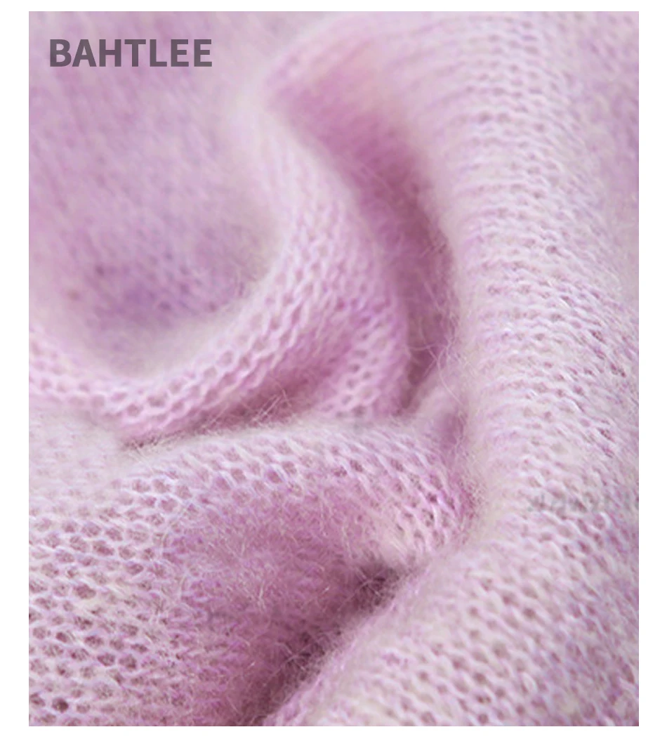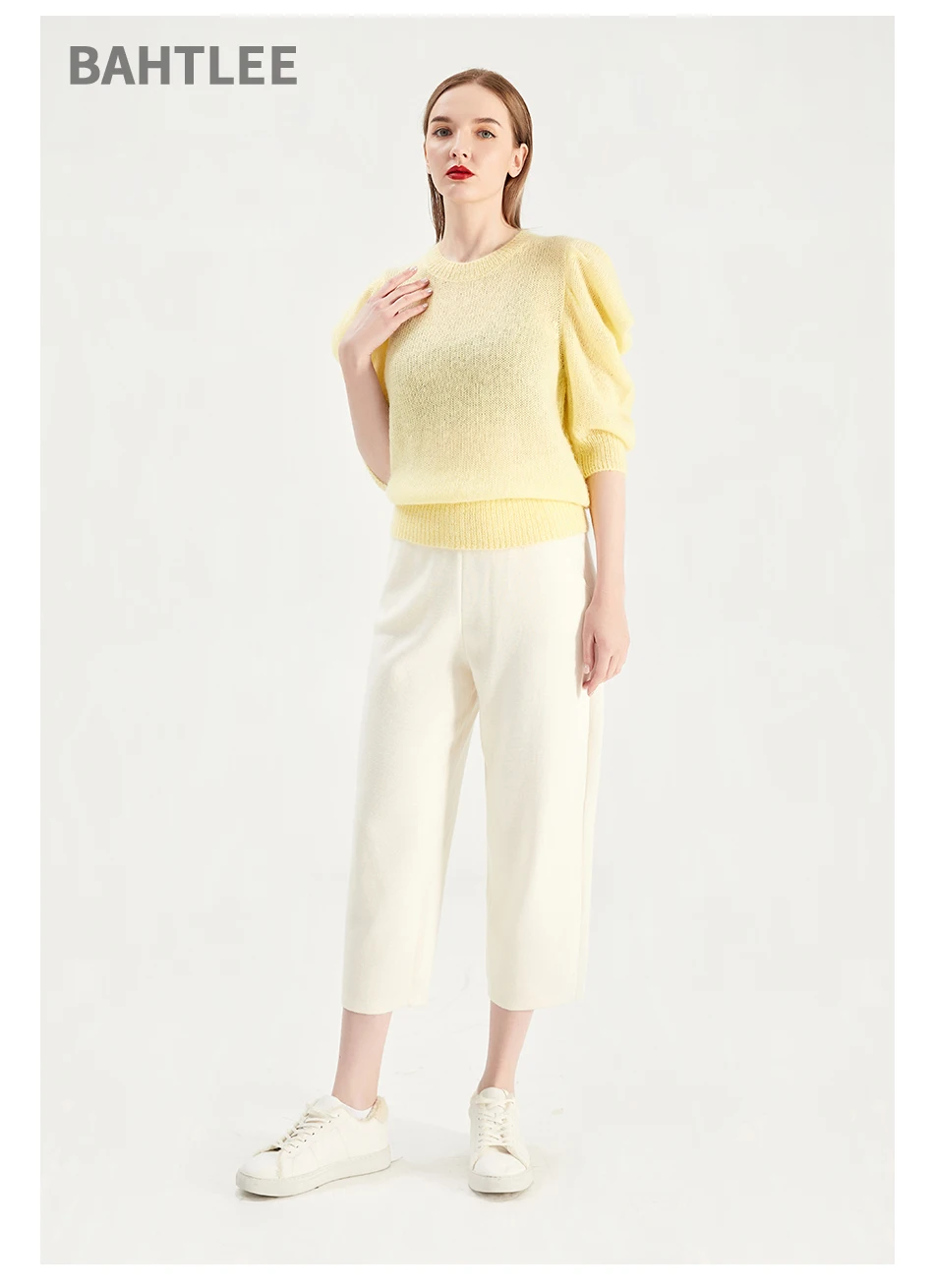 Пуловер BAHTLEE женский из мохера, свитер с круглым вырезом и рукавами-бабочками, шерстяной вязаный джемпер свободного кроя, весна-лето