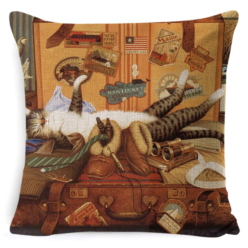 Милая книга ленивый кот, праздничные подушки, чехол для подушки, домашний декоративный диван, лен, квадратный принт, Cojines, чехол для подушки coussin